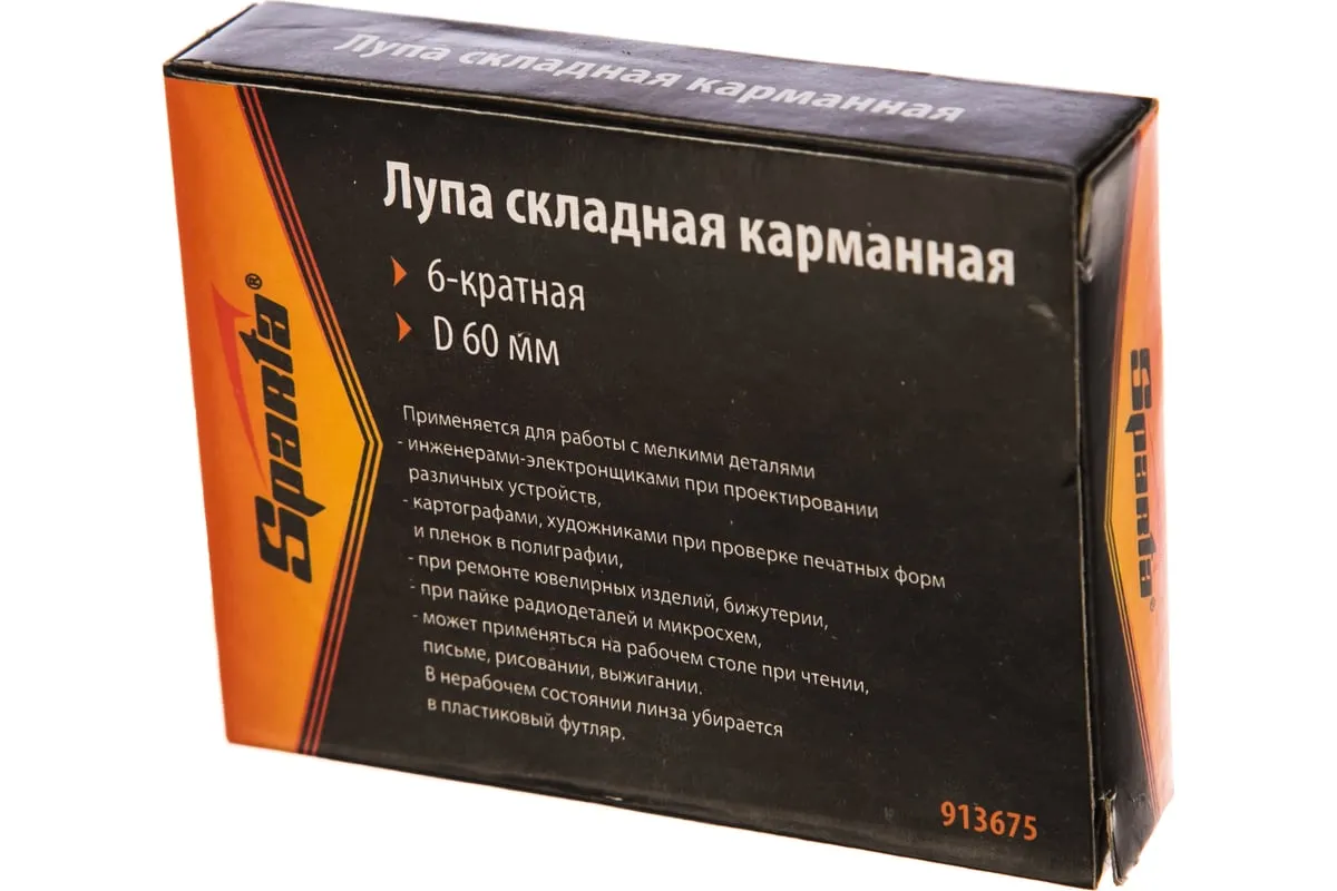 Складная карманная 6-кратная лупа Sparta 913675 диаметром 60 мм будет полезна в быту во время чтения или рукоделия. За счет складной конструкции легко поместится в карман, поэтому ее удобно брать с собой в поездки.