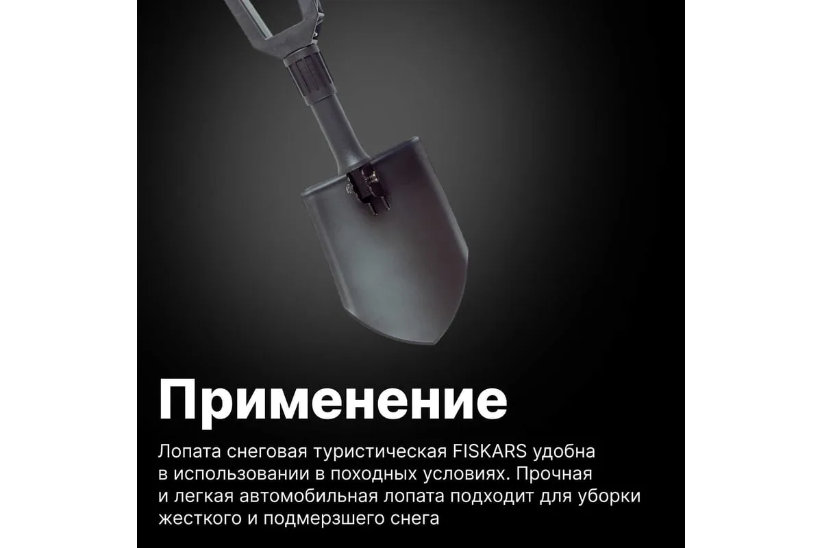 Складная лопата Fiskars 1000621 (131320) идеальна для автомобилистов и путешественников. Очень легкая. Изготовлена из прочного долговечного сплава. Может быть использована как мотыга. В комплекте - брезентовый чехол для хранения.