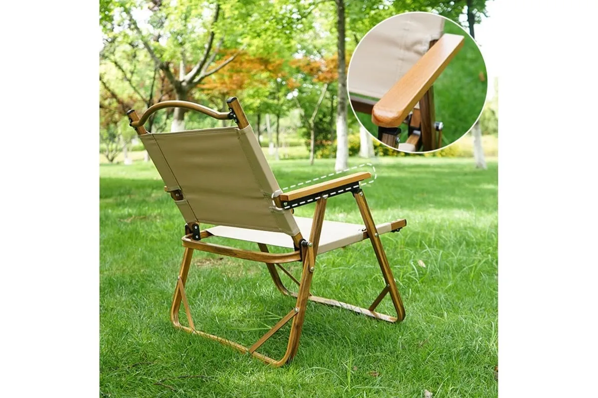 Кресло складное используется для отдыха на открытом воздухе и в помещении в положении сидя. Выполнено в виде трансформируемой из рабочего в транспортное (сложенное) положение конструкции. Подлокотники из бука.