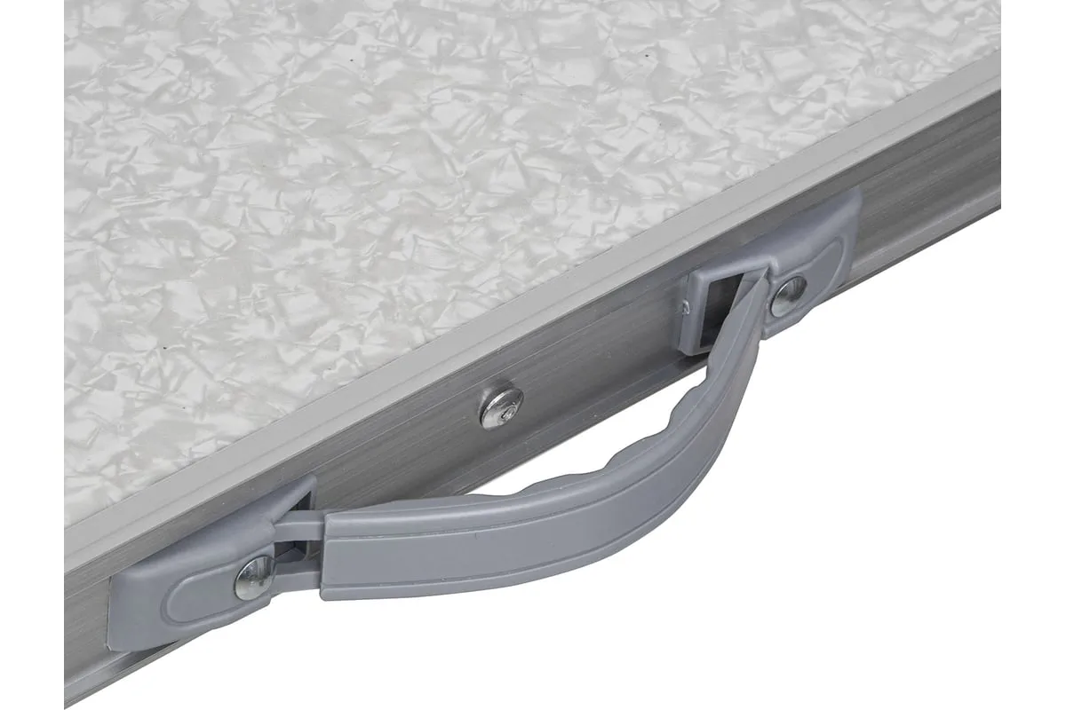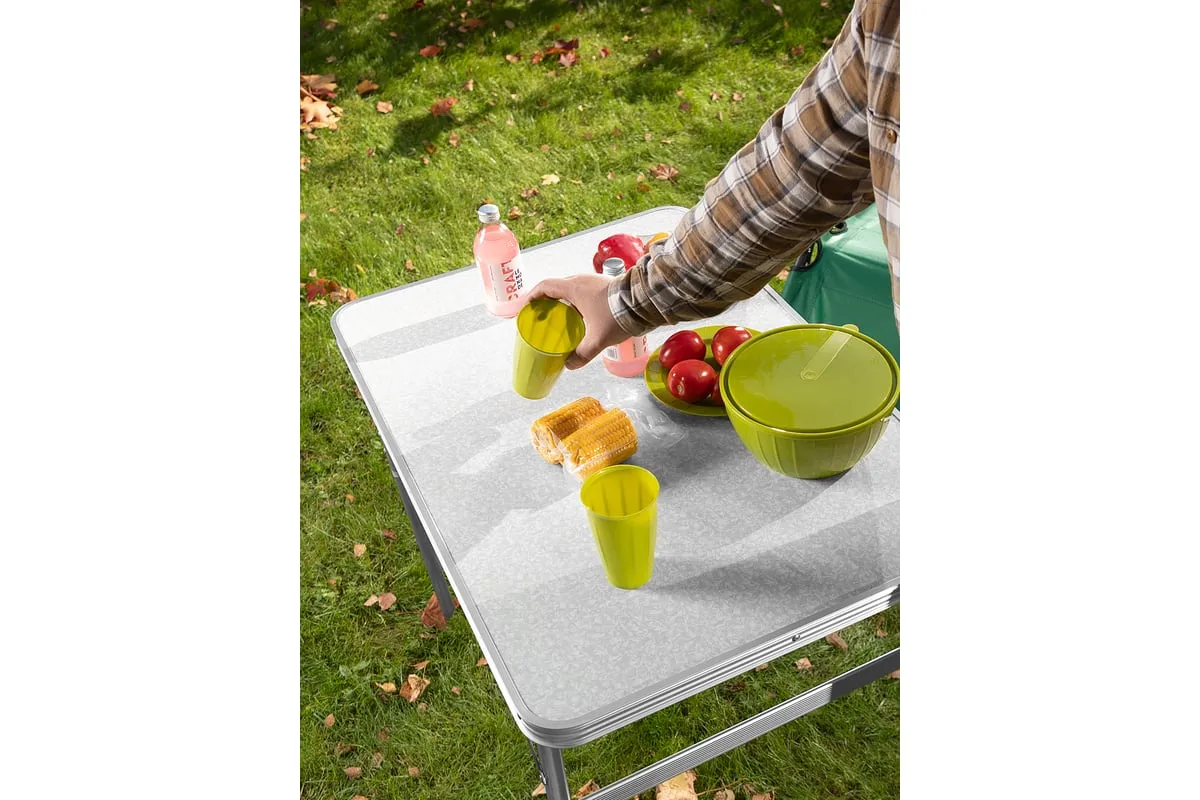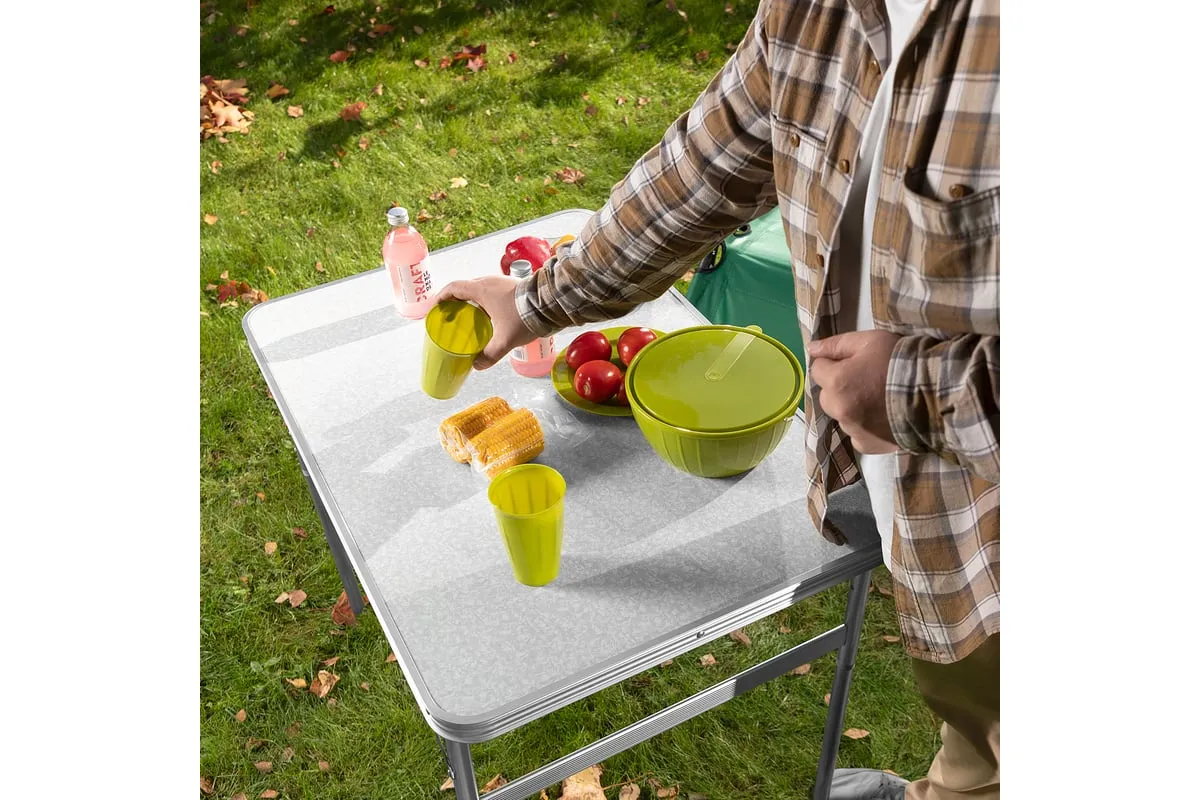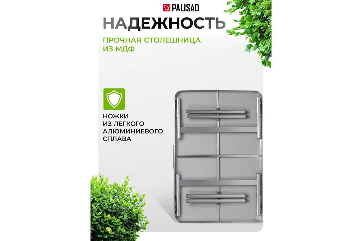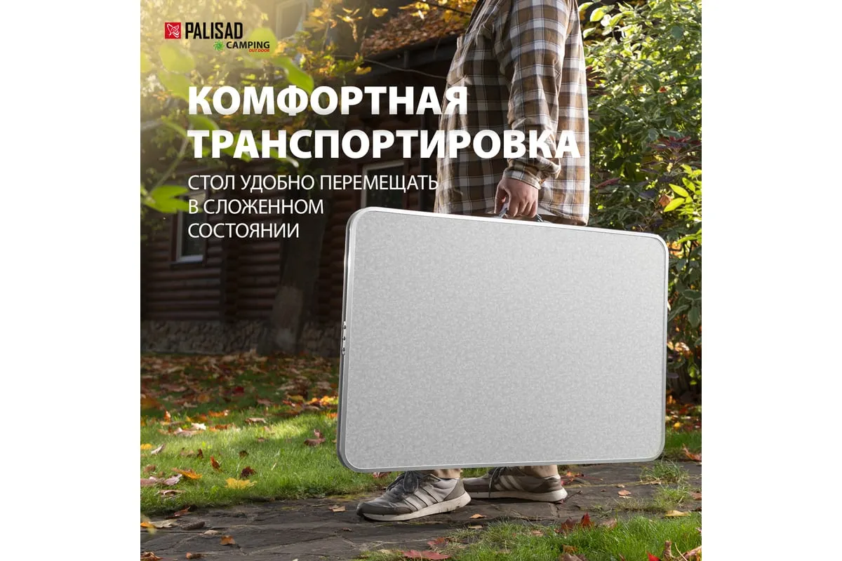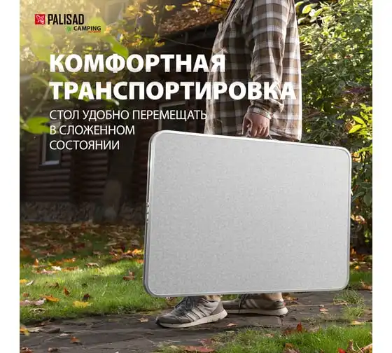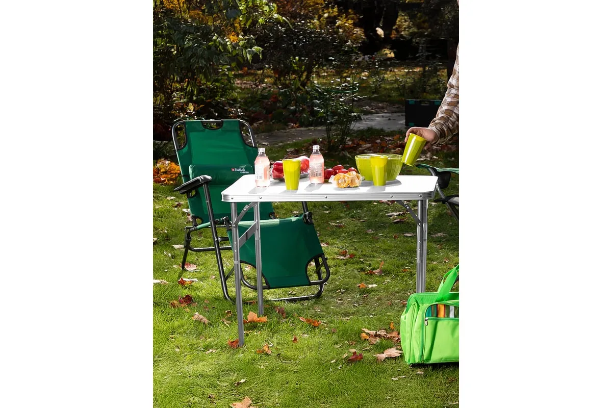Складной стол Palisad Camping 69583 размером 900 х 600 х 300 / 700 мм, с алюминиевыми ножками и столешницей из МДФ, позволяет с комфортом разместиться компании из нескольких человек. Надежная столешница из МДФ легко выдерживает вес приборов и блюд с пищей. Высота ножек регулируется и может составлять 30 или 70 см. Ножки изготовлены из алюминиевого сплава, что облегчает конструкцию. Стол весит 4,22 кг, поэтому его легко перемещать. Он будет полезен для организации отдыха на природе, а также пригодится во время приема гостей в доме.