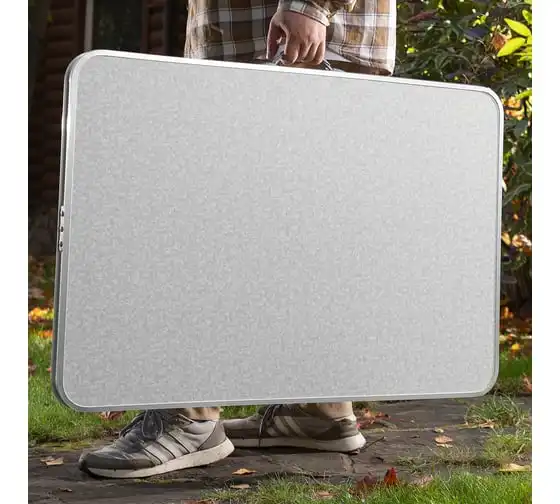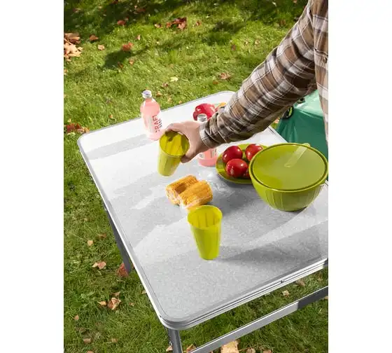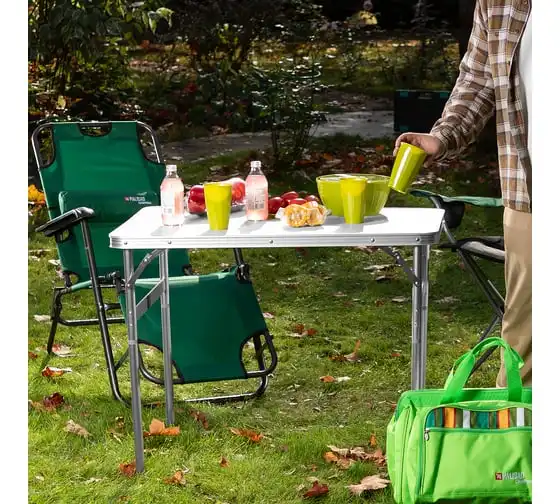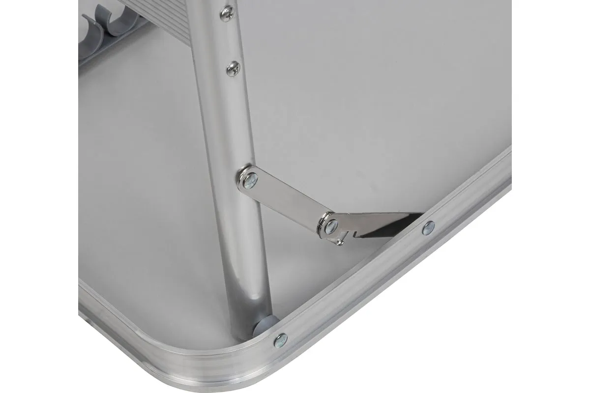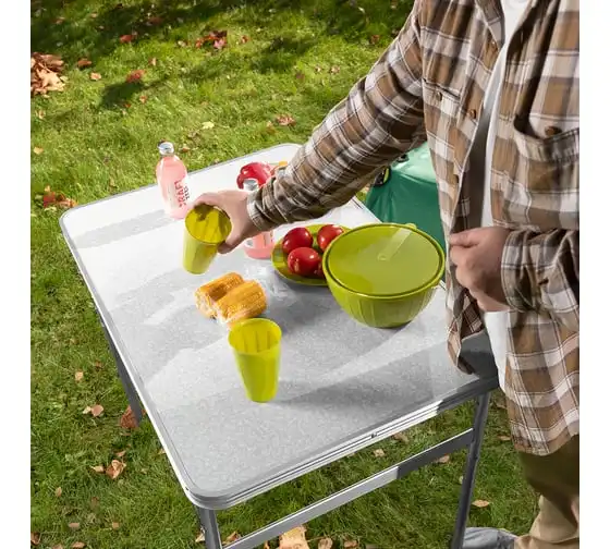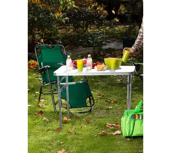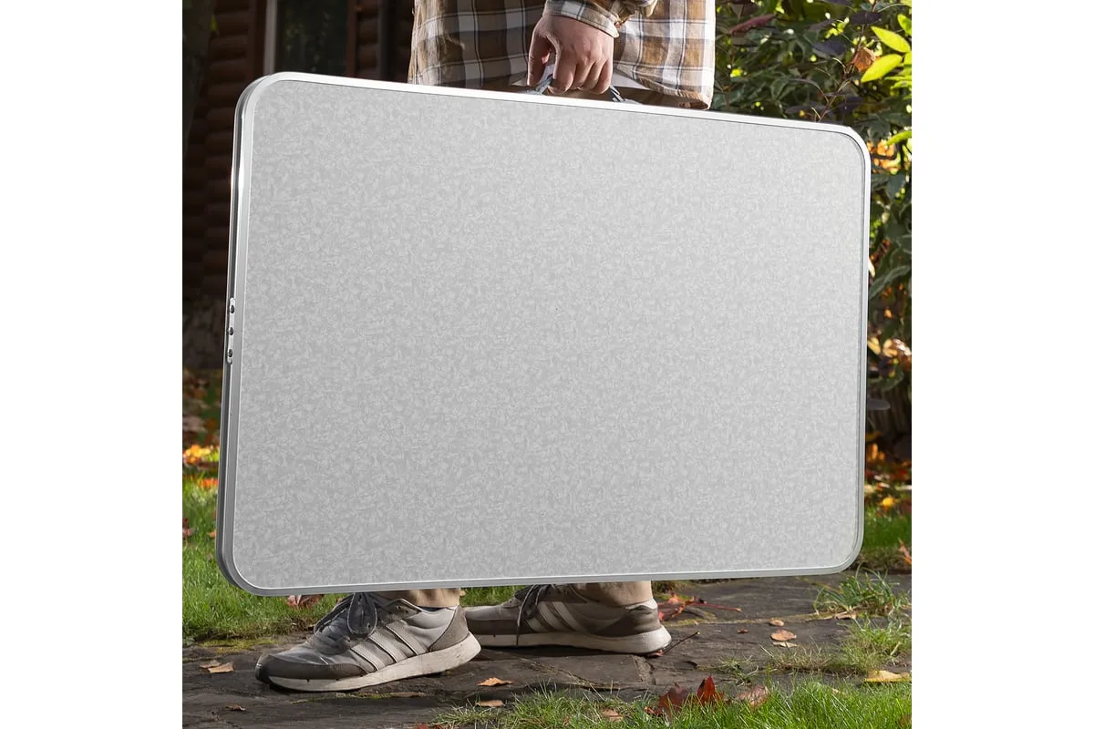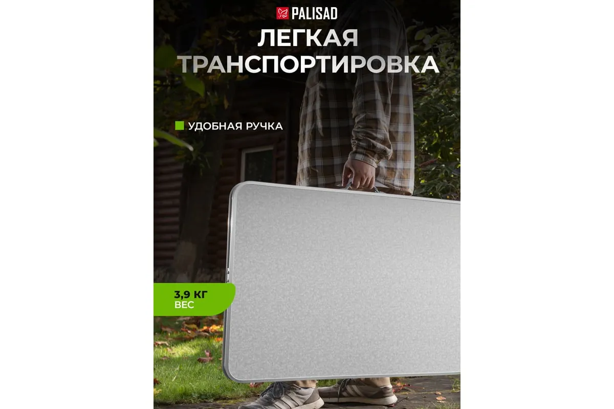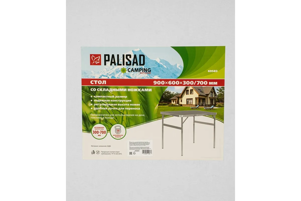 Складной стол Palisad Camping 69583 размером 900 х 600 х 300 / 700 мм, с алюминиевыми ножками и столешницей из МДФ, позволяет с комфортом разместиться компании из нескольких человек. Надежная столешница из МДФ легко выдерживает вес приборов и блюд с пищей. Высота ножек регулируется и может составлять 30 или 70 см. Ножки изготовлены из алюминиевого сплава, что облегчает конструкцию. Стол весит 4,22 кг, поэтому его легко перемещать. Он будет полезен для организации отдыха на природе, а также пригодится во время приема гостей в доме.
