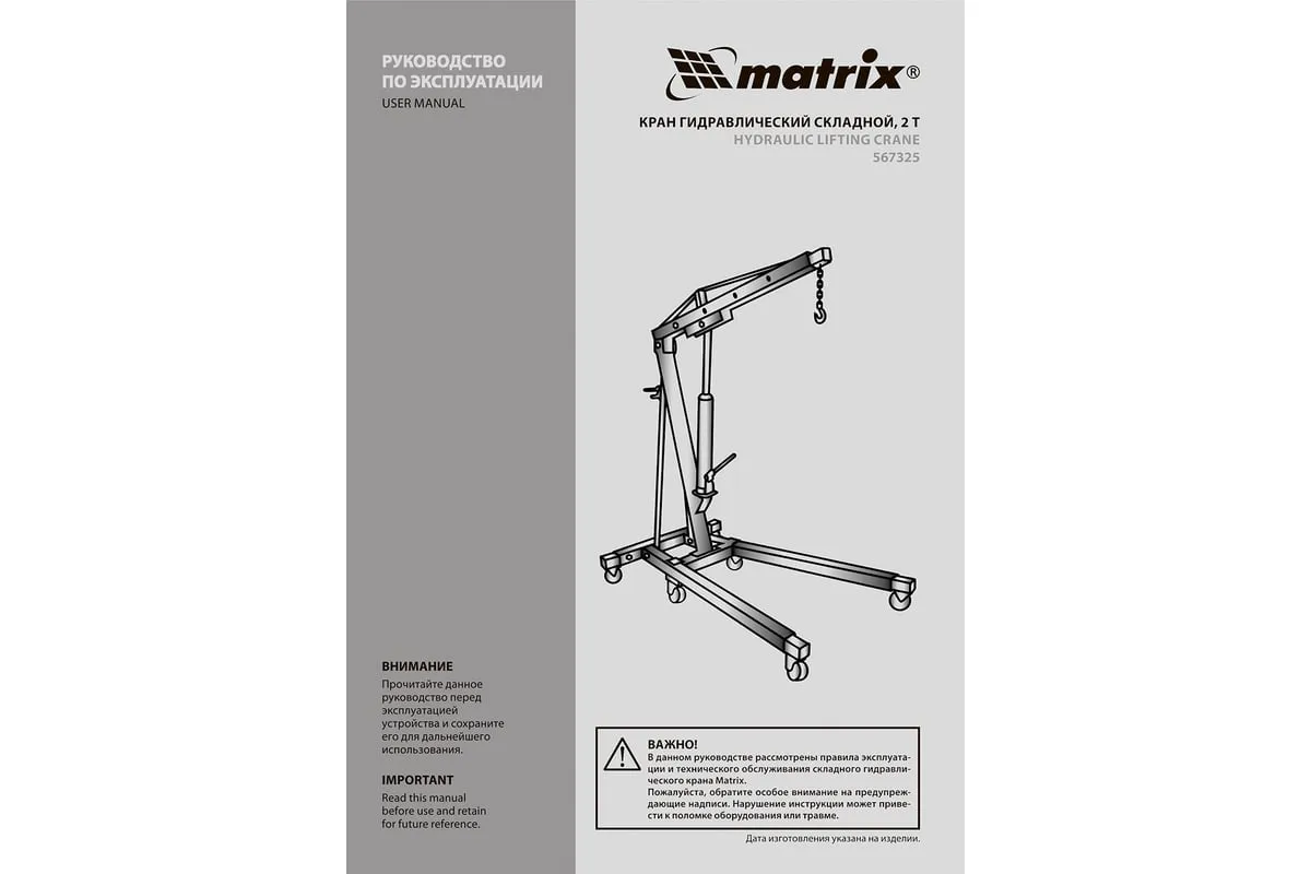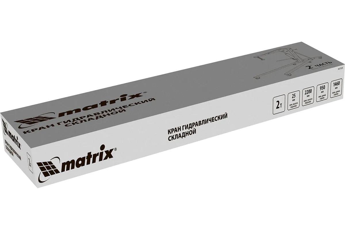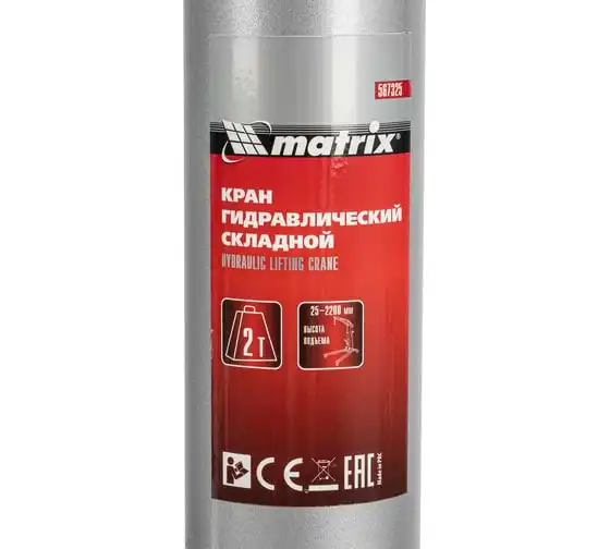 Складной гидравлический кран MATRIX 567325 успешно справляется с подъемом и перемещением грузов массой до 2 тонн. Модель используется в автосервисах, а также на производстве. Установка имеет складную конструкцию, благодаря которой ее легко хранить и транспортировать. Устройство не требует сложного технического обслуживания и не доставляет сложностей в эксплуатации.