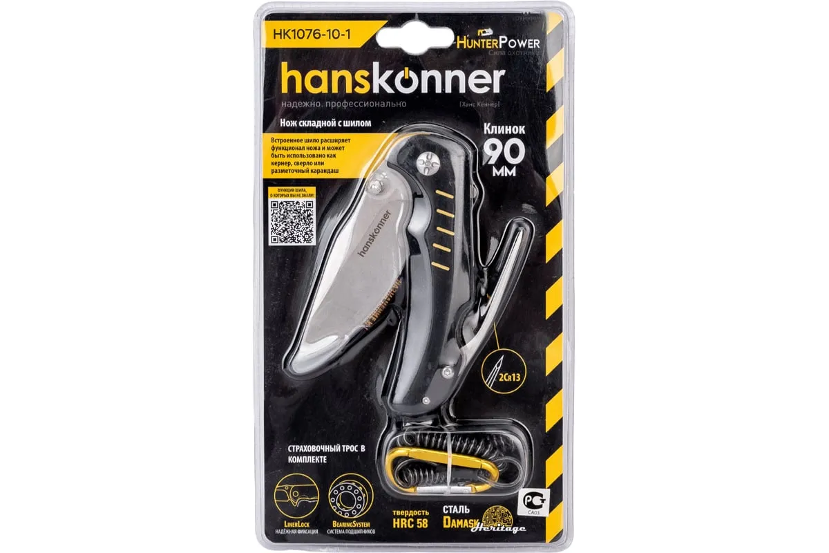 Складной нож Hanskonner 200 мм HK1076-10-1 подходит для столярных работ, разрезания бумаги, картона, упаковочной пленки и других работ дома и в офисе. Лезвие ножа изготовлено из нержавеющей стали 8Cr15Mo и благодаря специальной заточке и закалке режущей кромки токами высокой частотыпозволяет без особых усилий резать большинство подходящих материалов. Прочная рукоять и алюминиевые накладки на корпусе обеспечиваютудобный надежный хват. Шило четырехгранной формы в торцевой части рукояти помогает проделать отверстие в различных материалах и станет незаменимым помощником при столярных работах. Специальный подшипник дает открывать и закрывать лезвие ножа одной рукой.