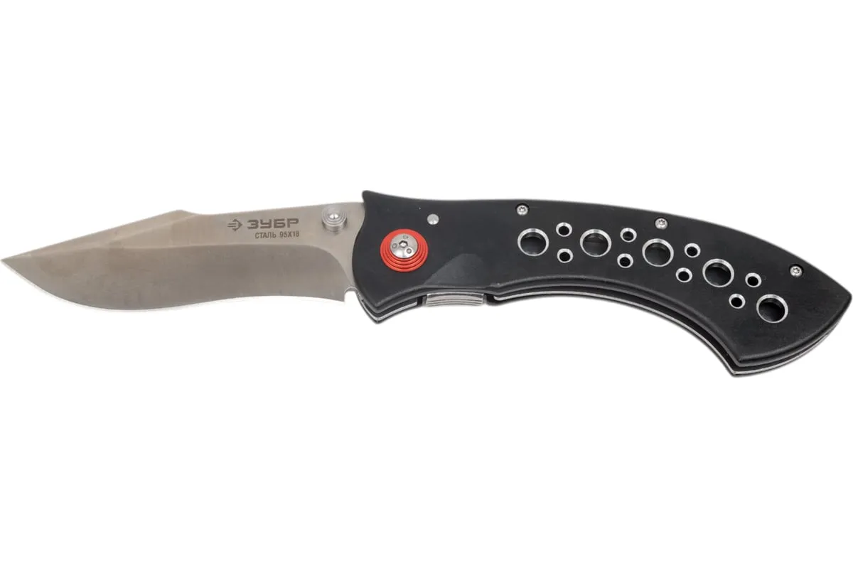 Складной универсальный нож Зубр ПРЕМИУМ РАТНИК 47715 большого размера предназначен для хозяйственных нужд. Клинок этой модели изготовлен из стали 95х18 и имеет длину 100 мм. Рукоятка выполнена из прочного металла. Нож отличается прочностью и износостойкостью.