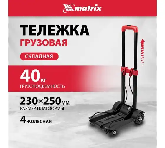 Тележка хозяйственная MATRIX складная, 4 колесная, грузоподъемность 40 кг 98205