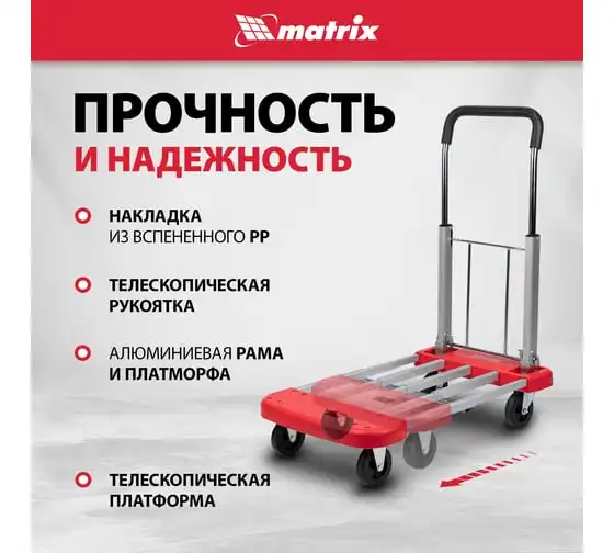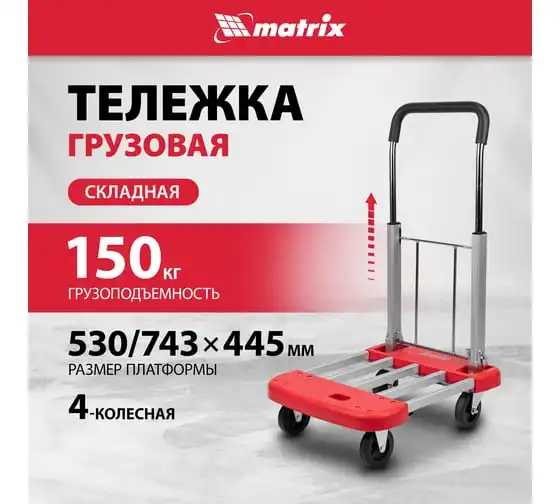 Тележка хозяйственная MATRIX телескопическая, грузоподъемность 150 кг 98210
