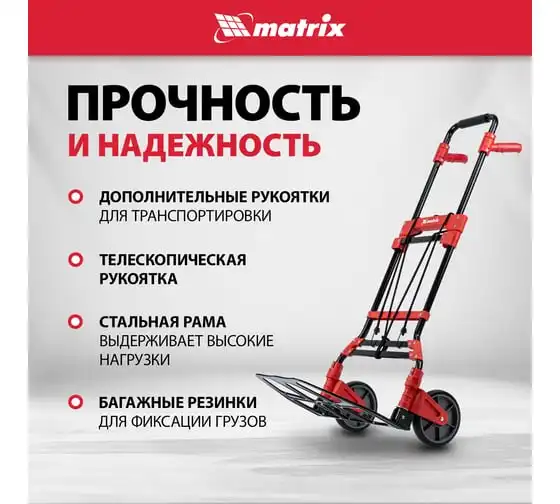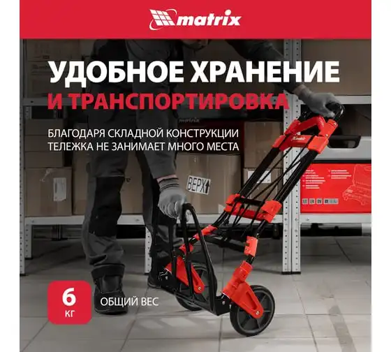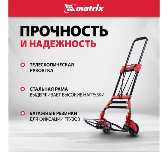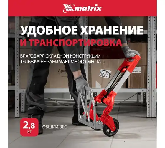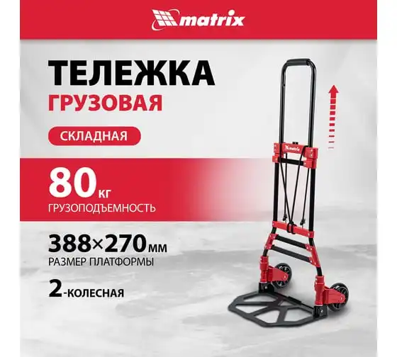Тележка хозяйственная MATRIX складная, 2 колесная, стальная, грузоподъемность 80 кг 98207