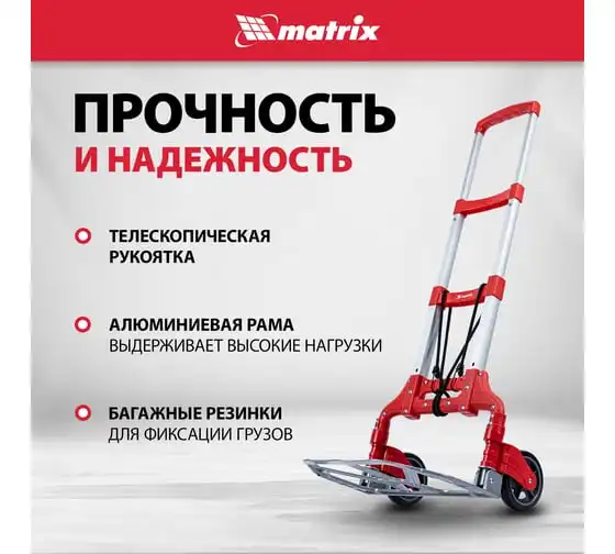 Тележка хозяйственная MATRIX складная, 2 колесная, алюминиевая, грузоподъемность 80 кг 98206