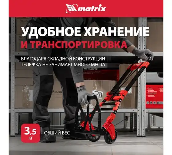 Тележка хозяйственная, складная MATRIX 2 колесная, грузоподъемность 150 кг 98208
