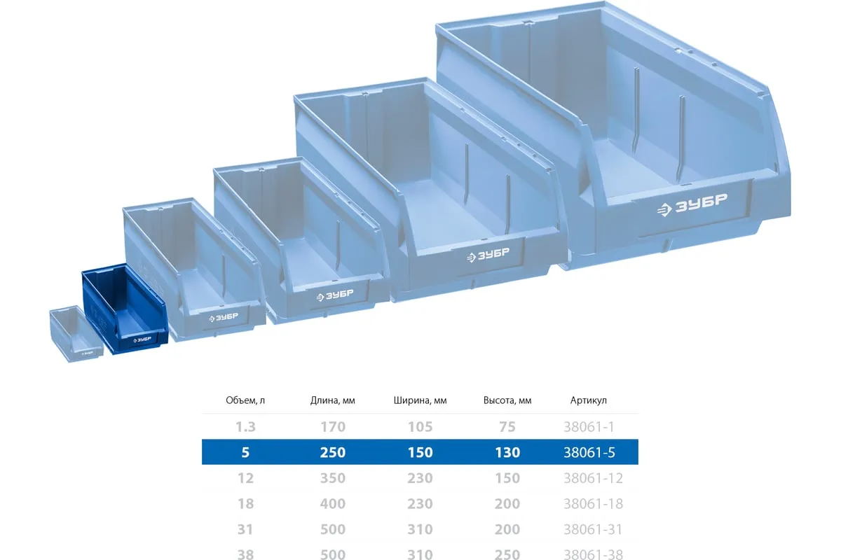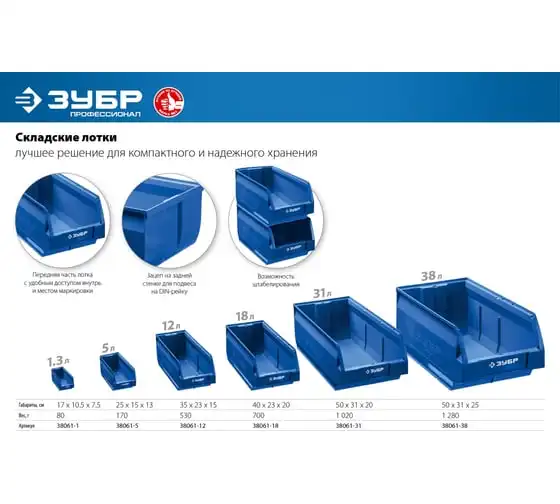 Складской лоток ЗУБР ЛСК-5 5 л 38061-5 используется для хранения метизов, ручного инструмента, оснастки.