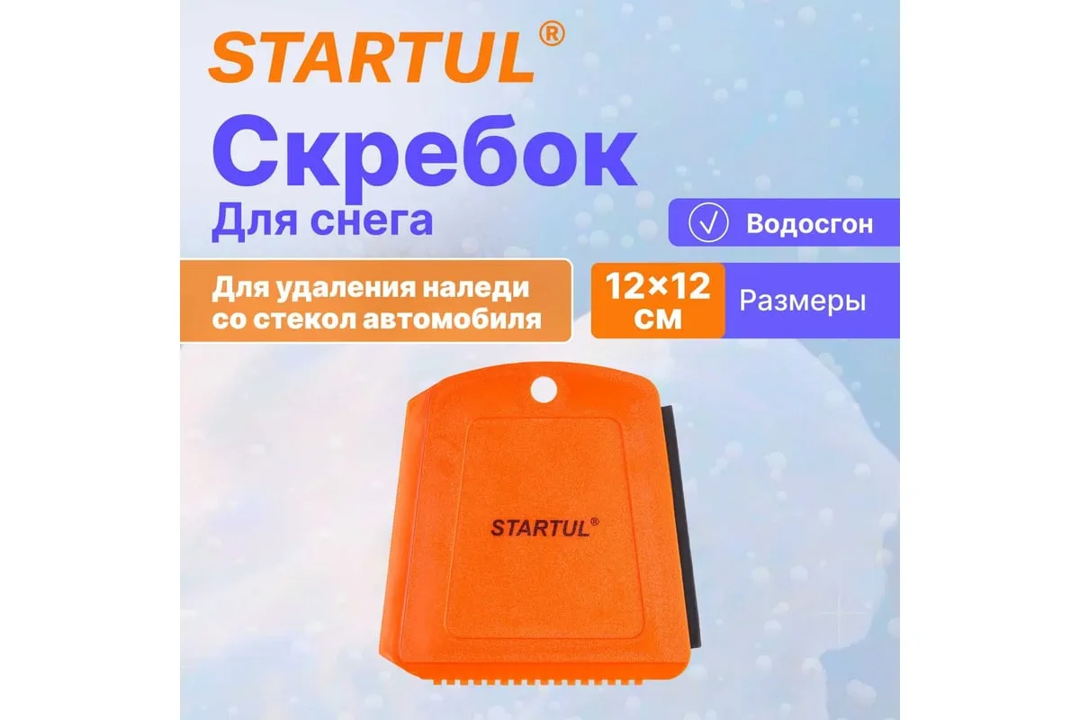 Скребок для льда STARTUL Master 12x12см ST9075-09 предназначен для удаления наледи со стеклянных поверхностей автомобиля. Назначается для хозяйственных нужд. Прекрасно справляется с очисткой поверхности стекла благодаря резиновому водосгону, которое плотно прилегает к поверхности стекла и не оставляет пропусков.