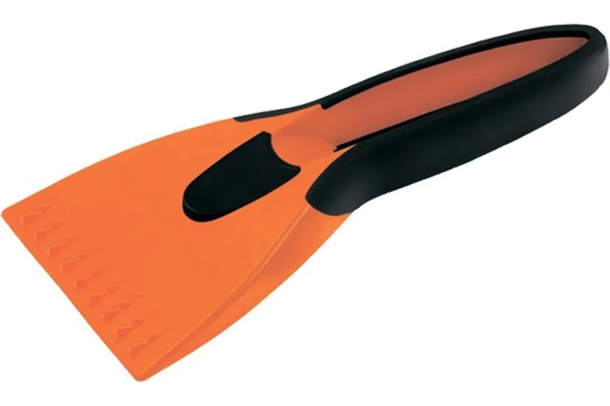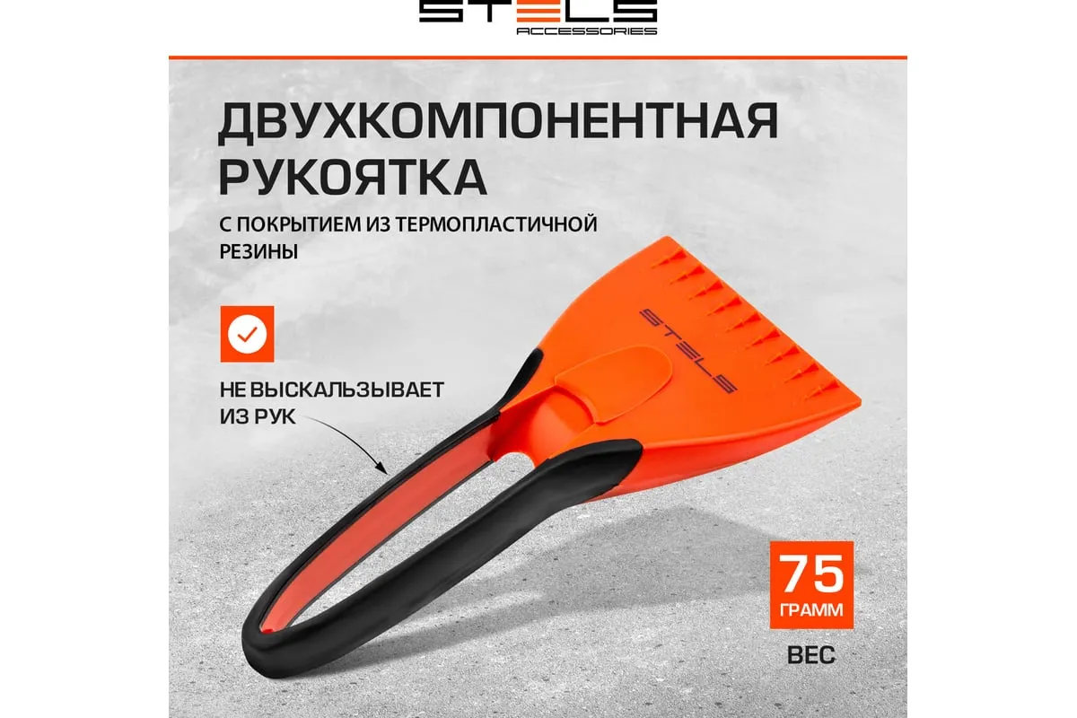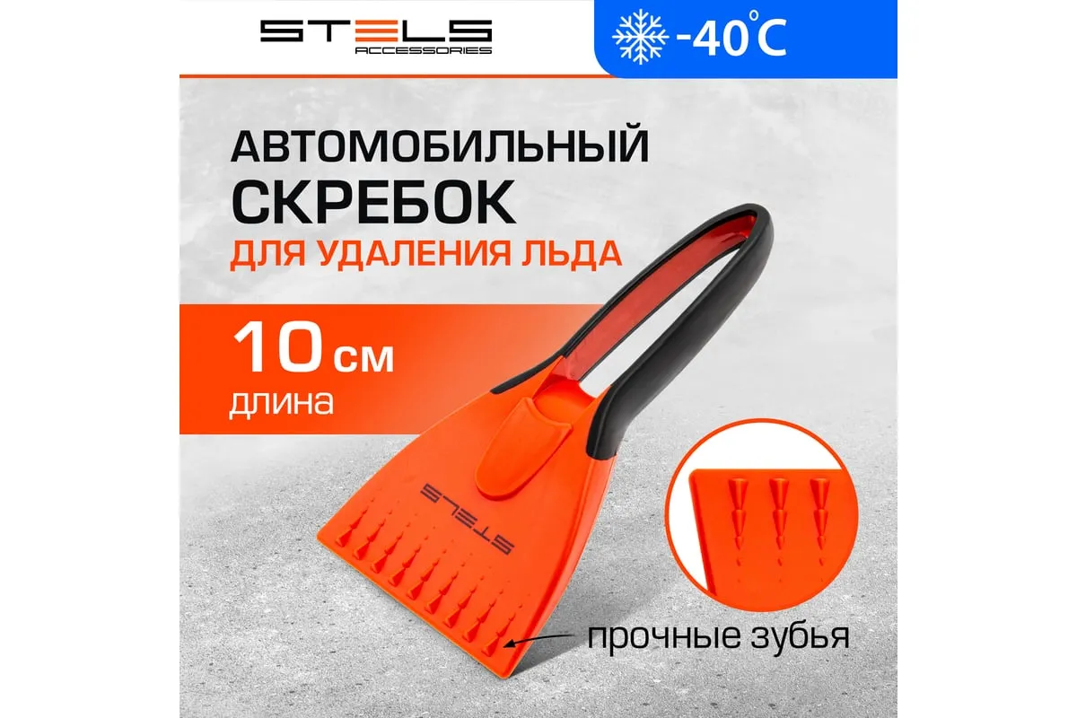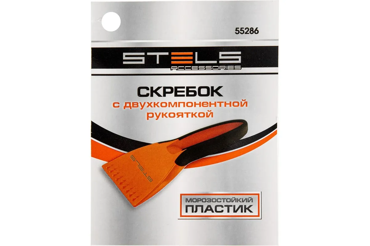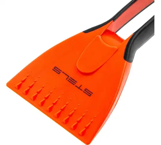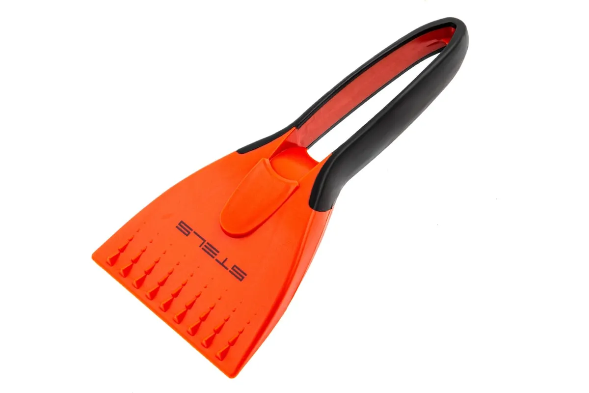 Скребок для льда Stels 55286 с двухкомпонентной рукояткой помогает удалять снег и наледь со стекол, зеркал и кузова автомобиля. За счет своей портативности он легко помещается в бардачке.