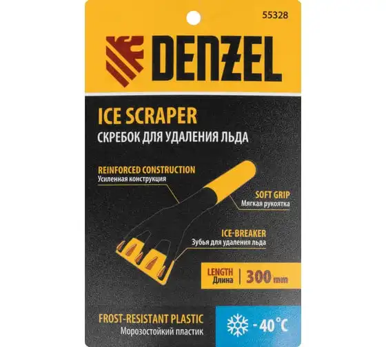 Скребок Denzel 55328 с мягкой рукояткой предназначен для удаления наледи со стекол и зеркал автомобиля. Благодаря компактным размерам 300 х 100 мм он легко помещается в салоне автомобиля и всегда доступен.