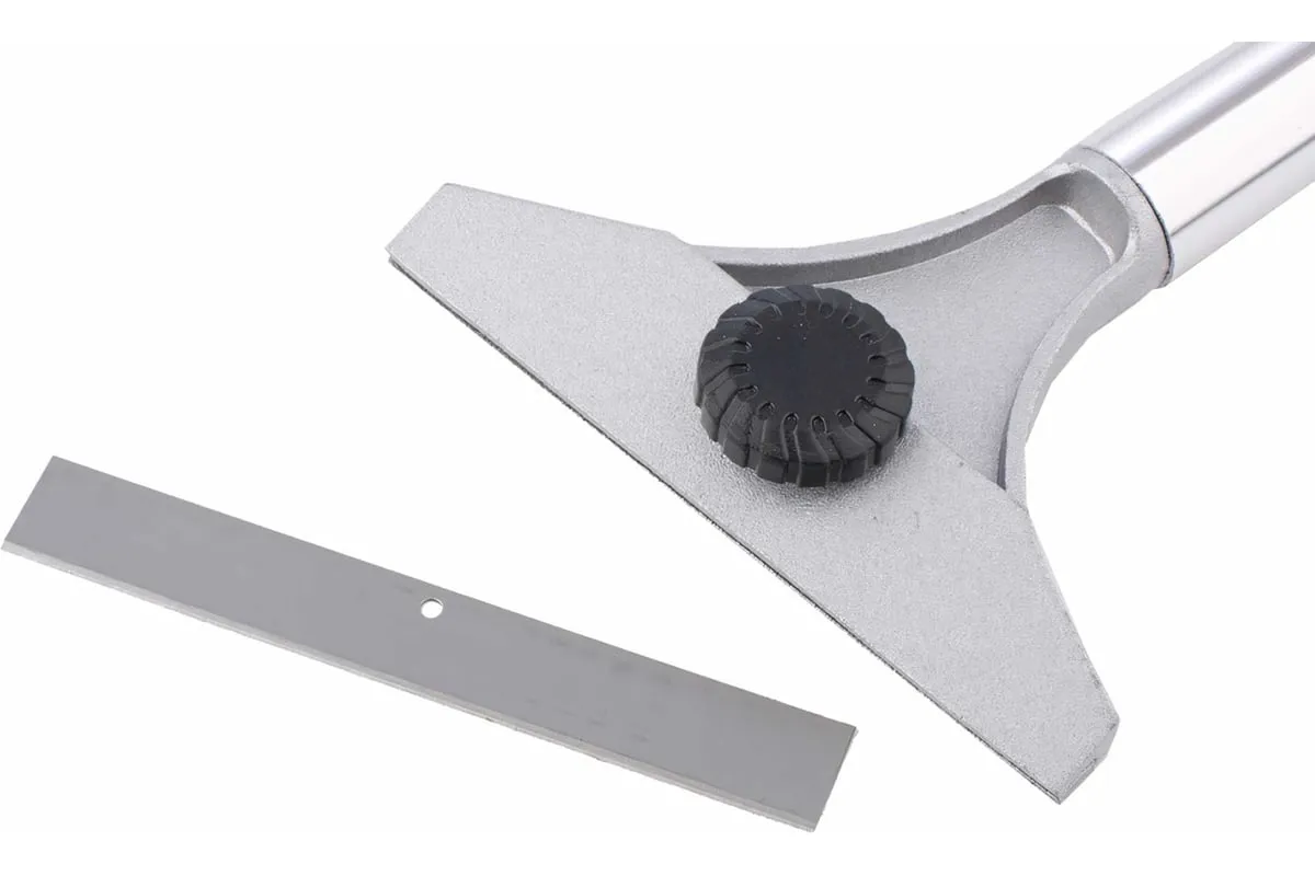 Скребок Matrix 79545 с фиксированным лезвием шириной 100 мм, с металлической обрезиненной ручкой, эффективно снимает с поверхностей краску и обои, излишки монтажной пены, наклейки и жевательную резинку. С этими задачами он успешно справляется благодаря острой стороне двустороннего лезвия. Тупая сторона лезвия используется для удаления шпаклевки, цемента, остатков строительных смесей. Предусмотрена возможность замены полотна, поэтому скребок прослужит долго. Инструмент будет полезен во время отделочных работ, пригодится также в быту.