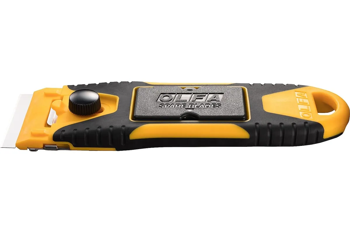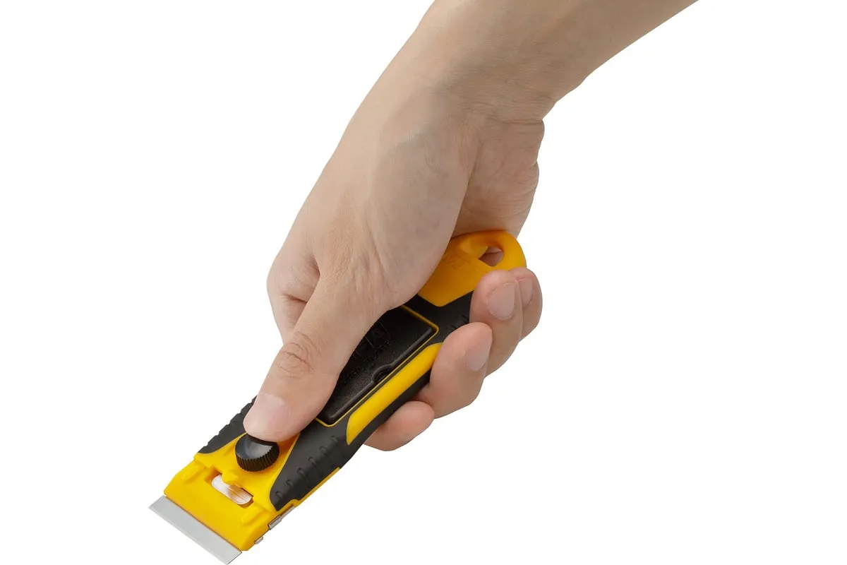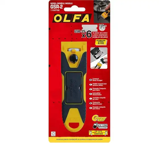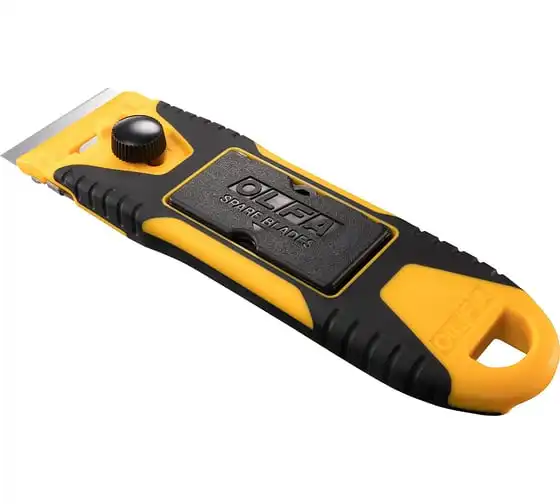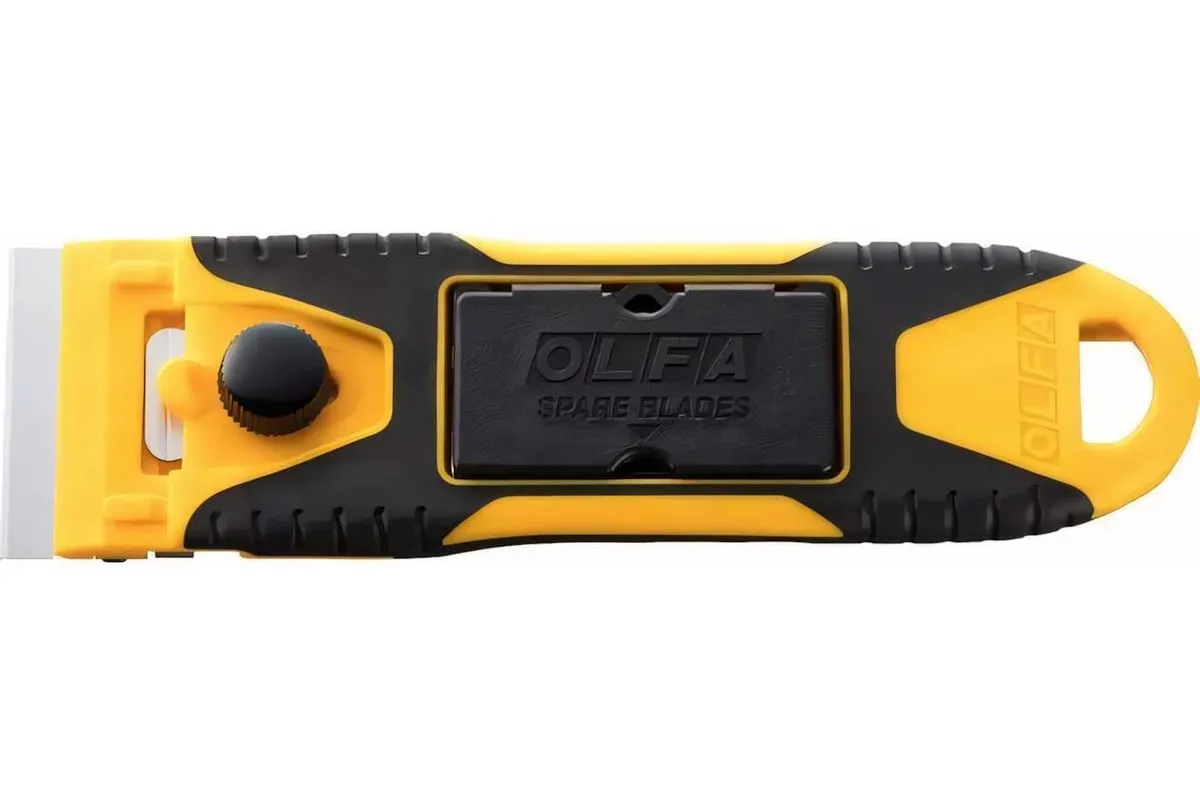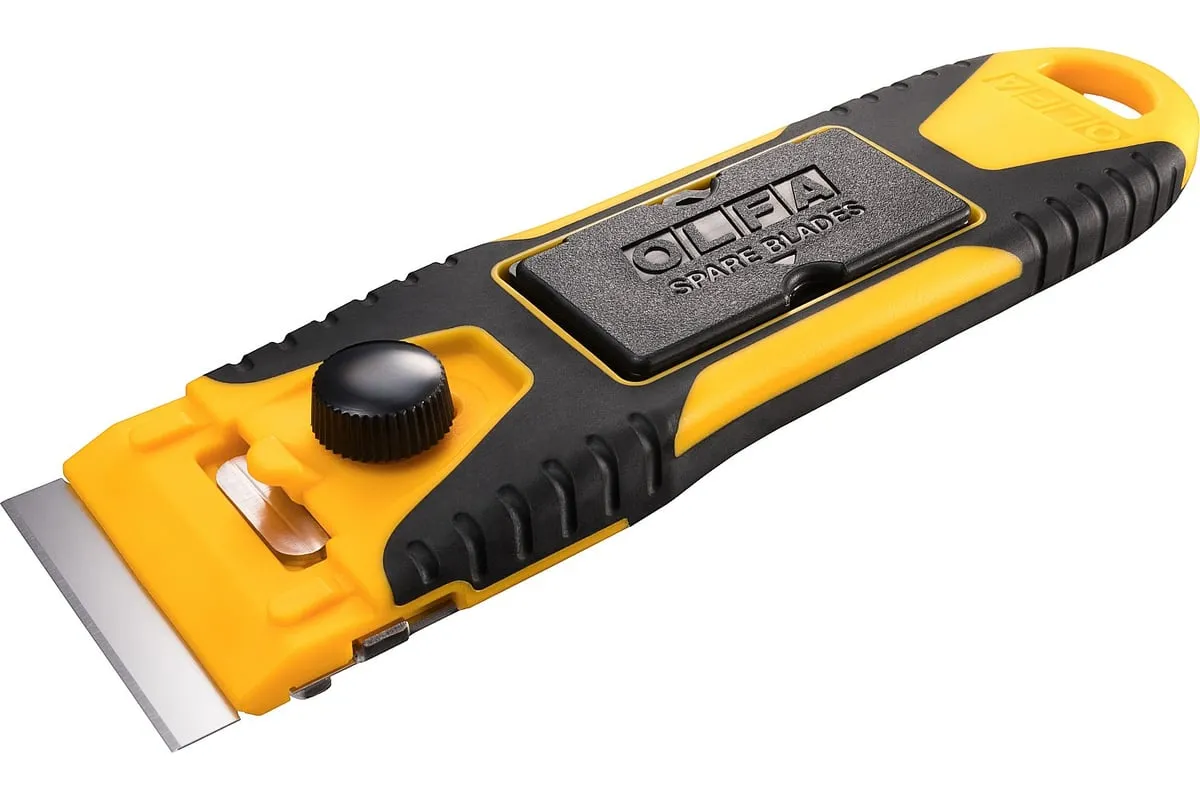 Компактный скребок OLFA 40 мм OL-GSR-2 удобен тем, что позволяет устранять загрязнения на небольшой площади в труднодоступных местах и на изогнутых поверхностях. Контейнер для лезвия можно использовать как защитную крышку для ножа.
