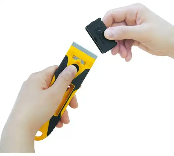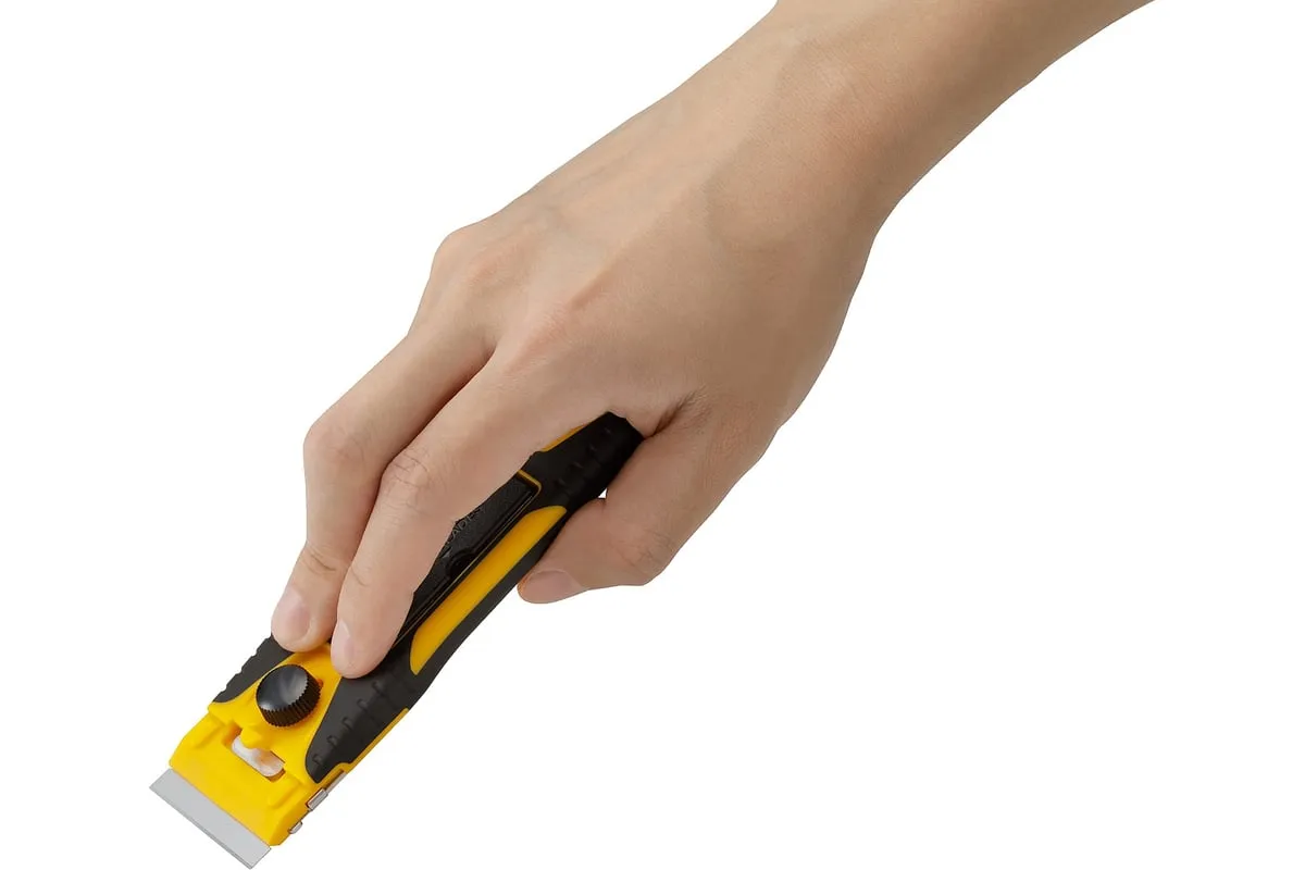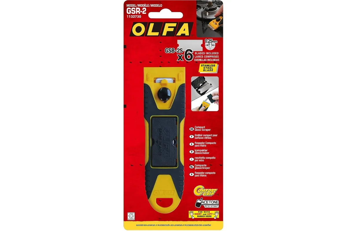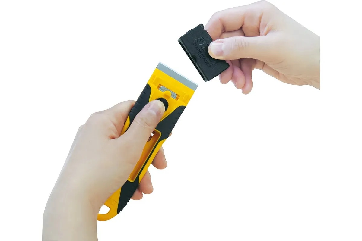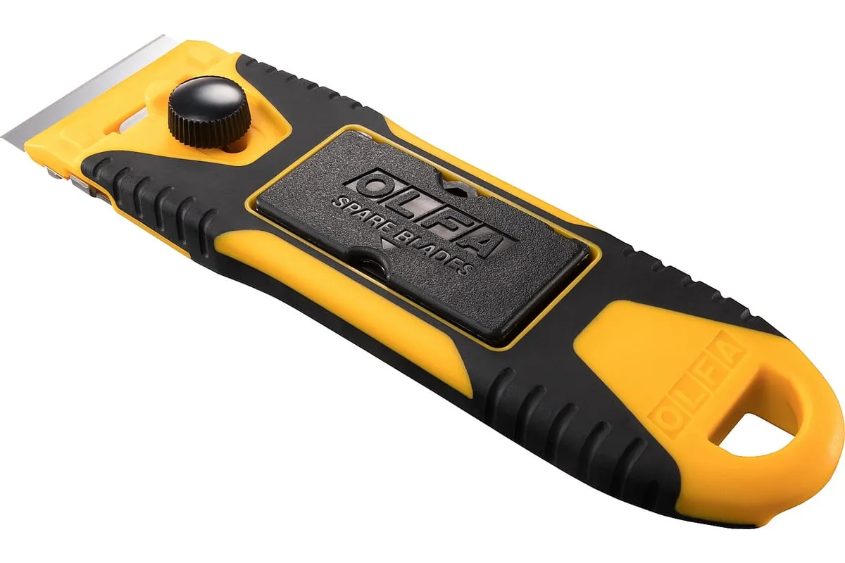 Компактный скребок OLFA 40 мм OL-GSR-2 удобен тем, что позволяет устранять загрязнения на небольшой площади в труднодоступных местах и на изогнутых поверхностях. Контейнер для лезвия можно использовать как защитную крышку для ножа.