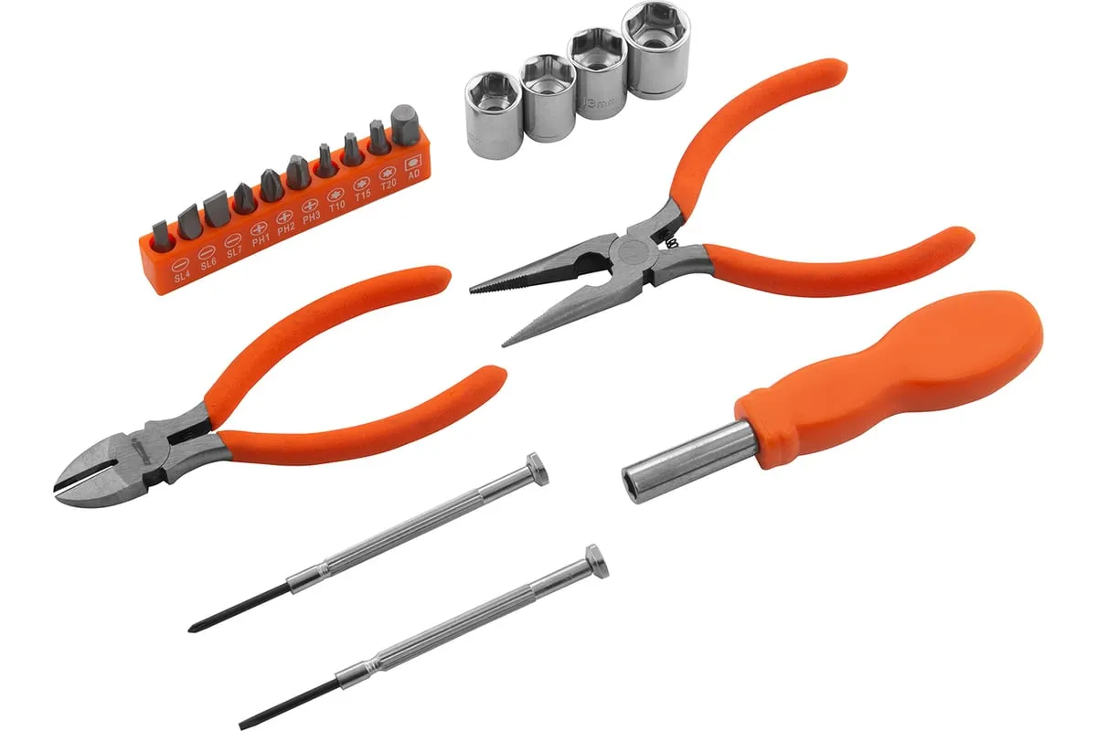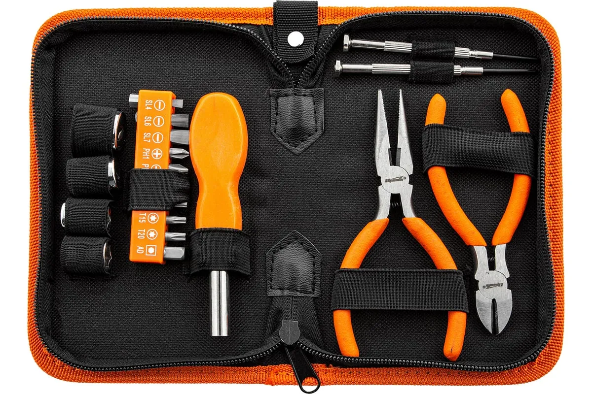 Набор Sparta 13546, 19 предметов, пригодится при выполнении слесарно-монтажных работ. Он будет полезен в хозяйстве для частных мастеров. В наборе есть отвертки для точных работ, отвертка для бит, биты и торцевые головки для монтажа/демонтажа крепежных элементов, бокорезы и длинногубцы для захвата, удержания и перекусывания проводов и мелких деталей.