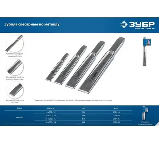 Слесарное двутавровое зубило по металлу применяется для обработки различных металлов, рубки и раскалывания металлического крепежа. Хромированное покрытие защищает от коррозии.