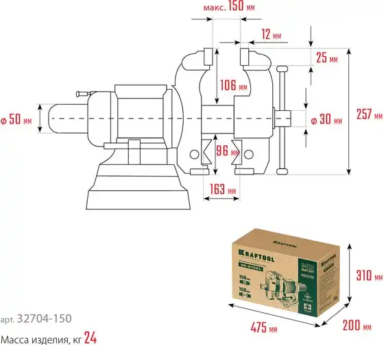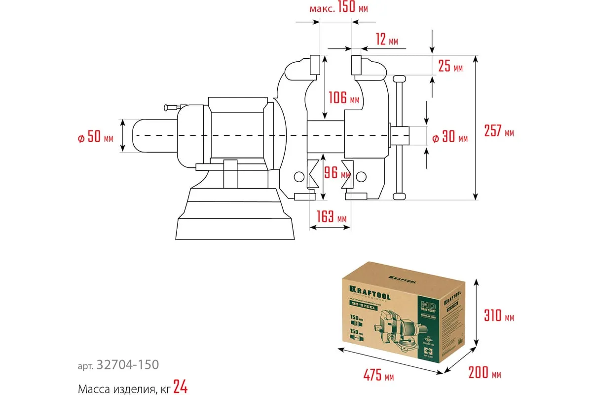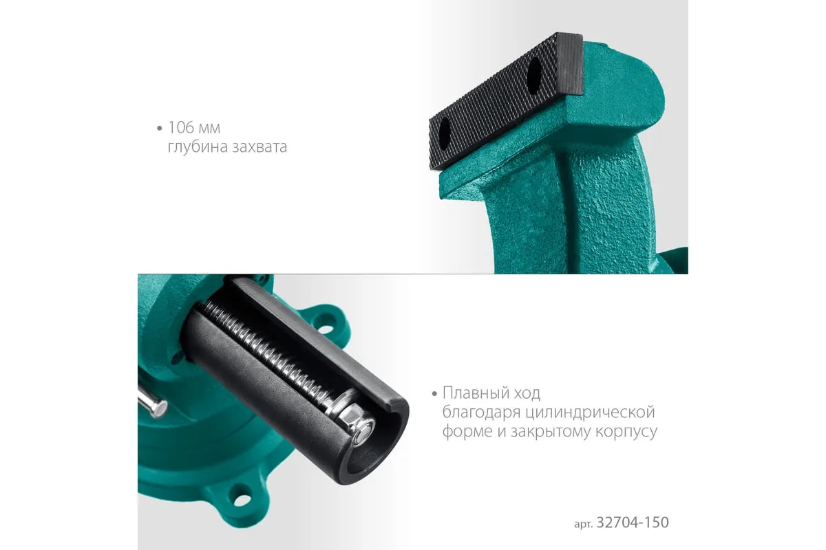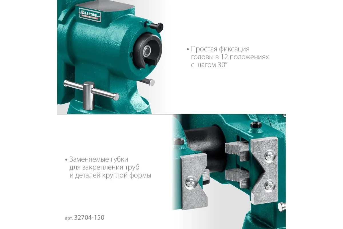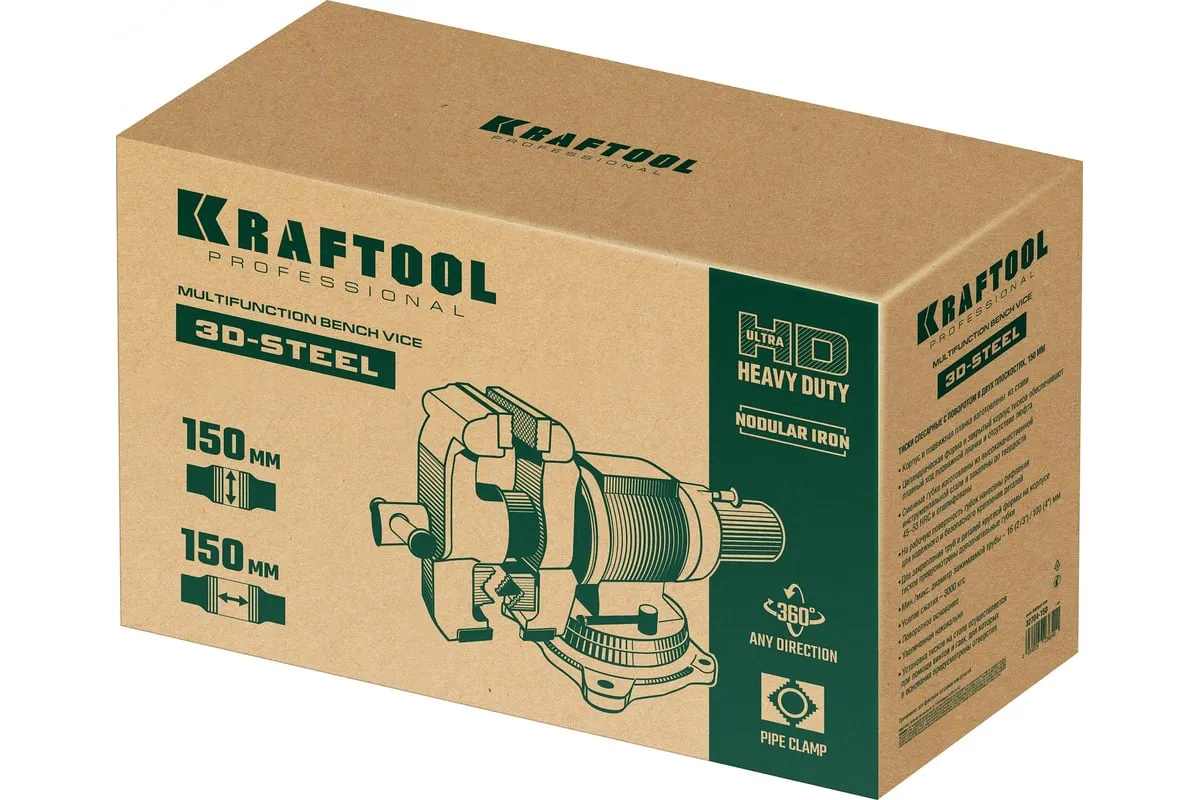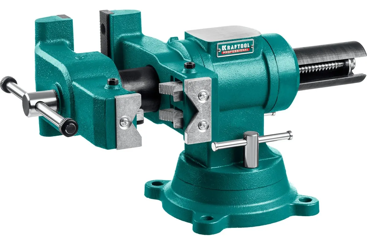 Слесарные тиски KRAFTOOL 3D-Steel 150 мм 32704-150 - профессиональный инструмент из высококачественной стали и возможностью поворота основания на 360 градусов. Подходит для мастерских широкого профиля. Обеспечивает надежный зажим деталей без риска проворачивания. Металл дополнительно окрашен, что снижает риск появления коррозии.