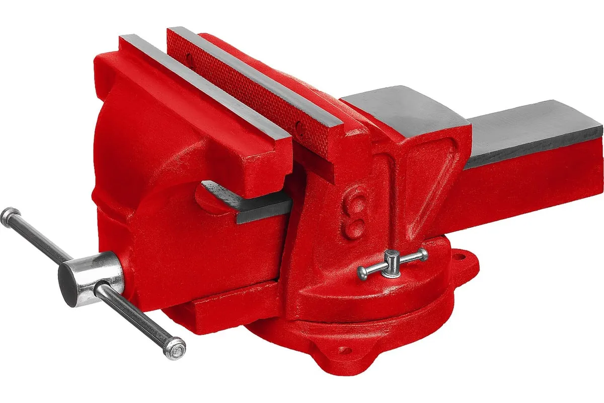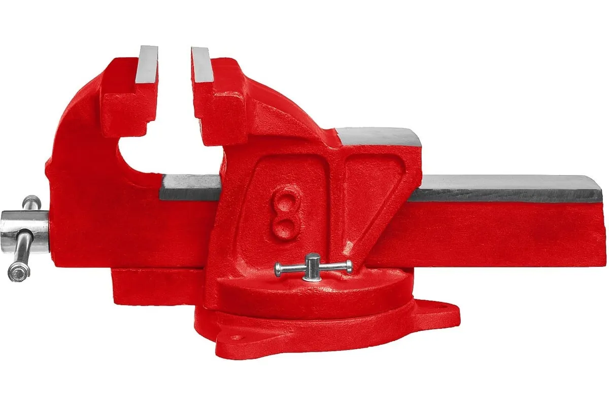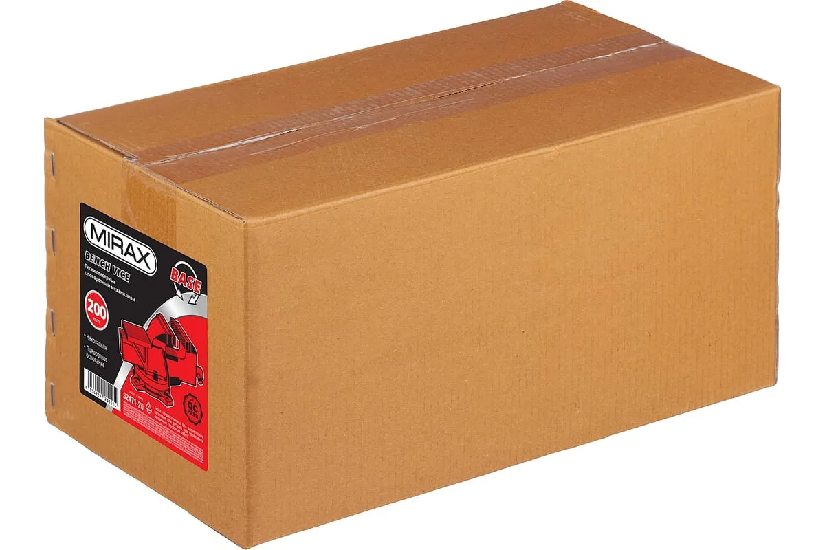 Слесарные тиски MIRAX ширина губок 200 мм 32471-20 - надежный инструмент с поворотным механизмом, обеспечивающим удобство при выполнении слесарных работ. Корпус изготовлен из высокопрочного чугуна, а губки из высокоуглеродистой стали. Модель выдержит высокие нагрузки. Изделие широко применяется на производствах, в различных слесарных мастерских, в частных хозяйствах и автосервисах.