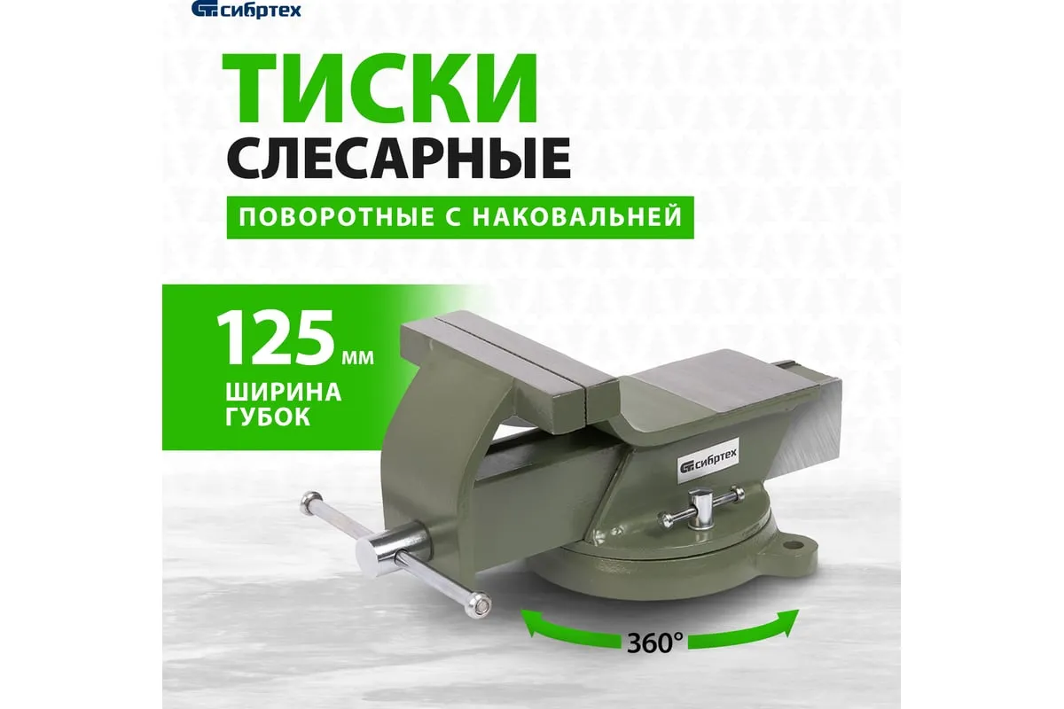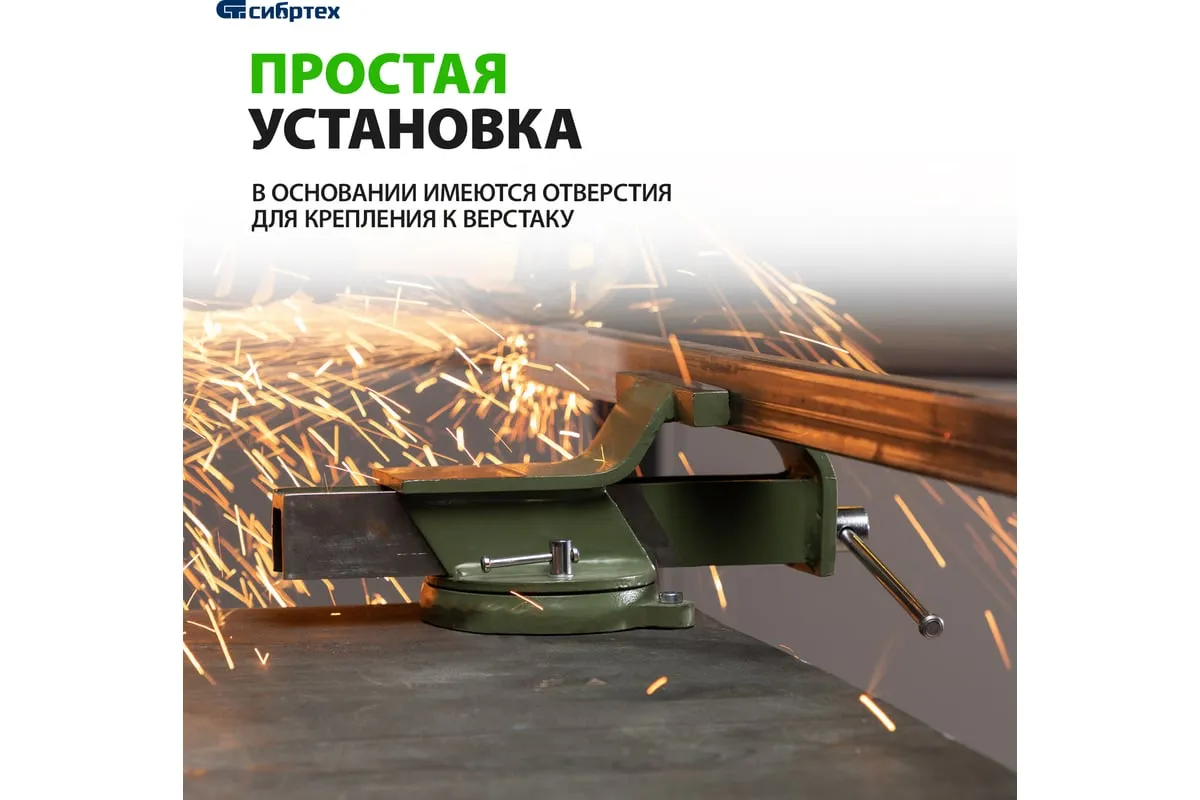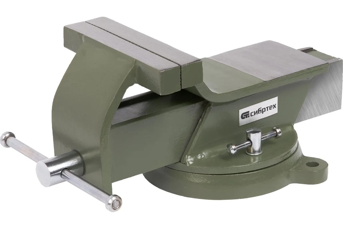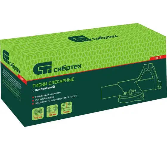 Стальные слесарные тиски Сибртех 18619 с поворотным механизмом и прижимными винтами имеют ширину губок 125 мм и предназначены для жесткой фиксации деталей. Используются для сверления, шлифования, пиления, выполнения сборочных и других работ. Тиски вращаются на 360°, что позволяет придать заготовке оптимальное положение. Приспособление будет полезно в мастерской, на даче и в гараже.