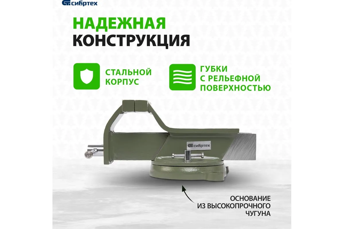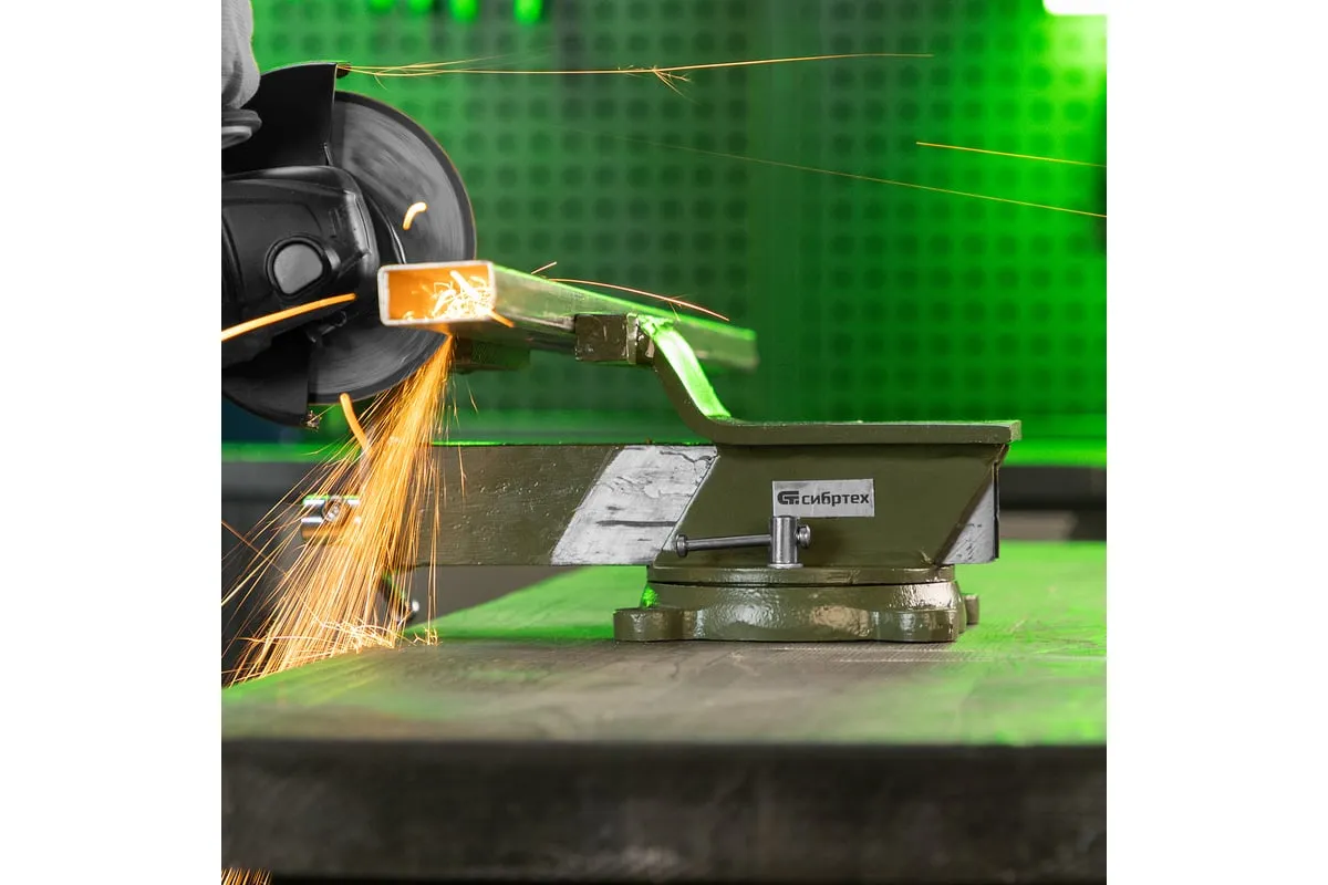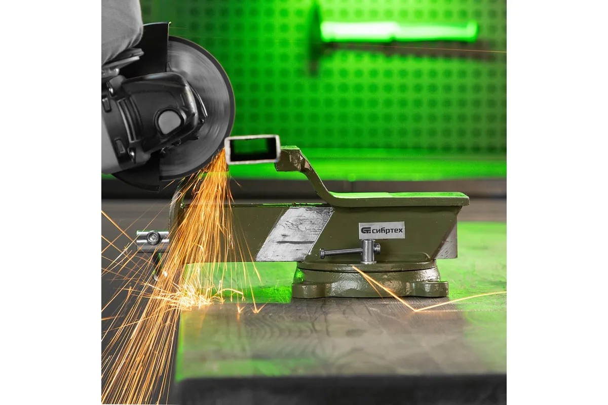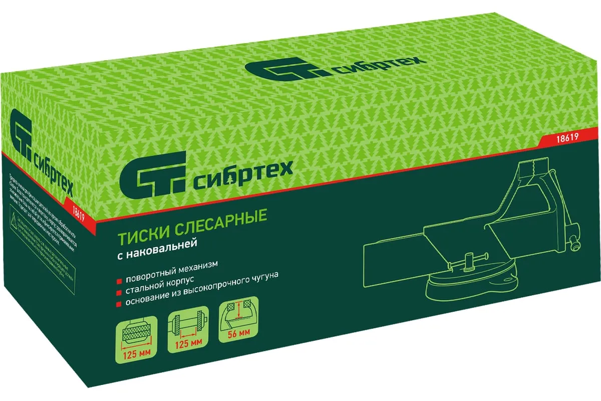 Стальные слесарные тиски Сибртех 18619 с поворотным механизмом и прижимными винтами имеют ширину губок 125 мм и предназначены для жесткой фиксации деталей. Используются для сверления, шлифования, пиления, выполнения сборочных и других работ. Тиски вращаются на 360°, что позволяет придать заготовке оптимальное положение. Приспособление будет полезно в мастерской, на даче и в гараже.