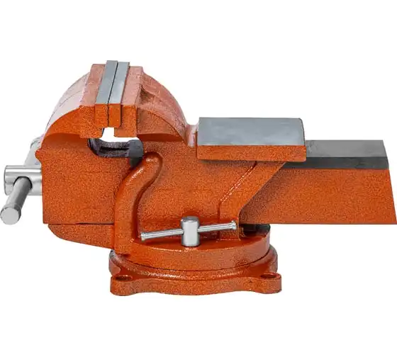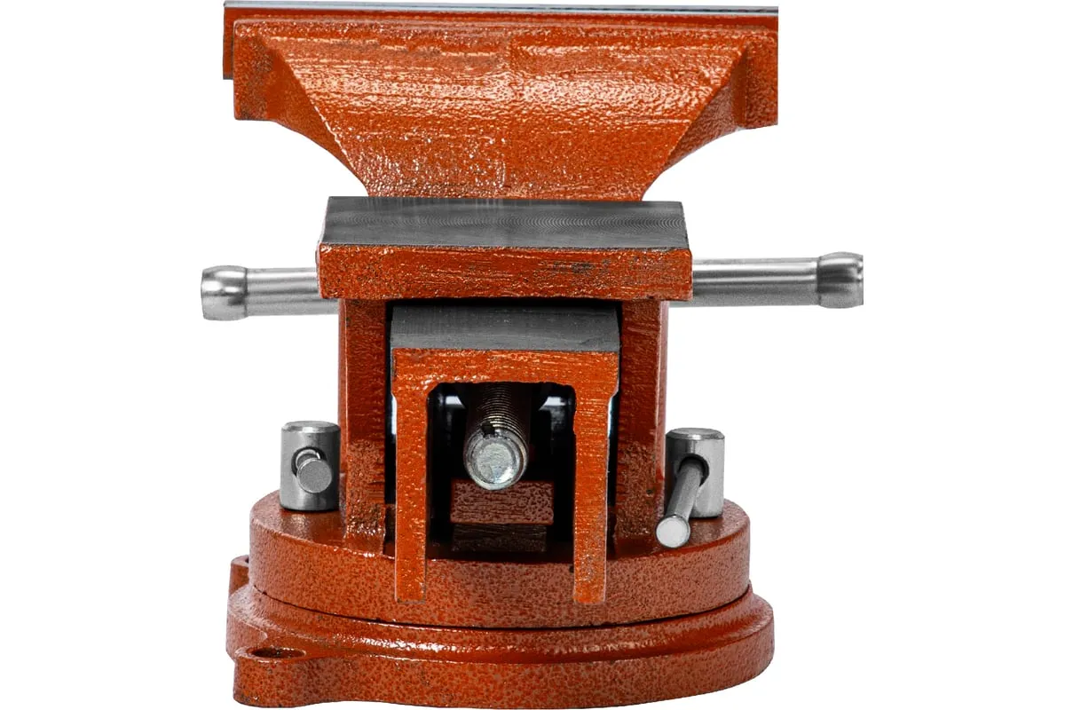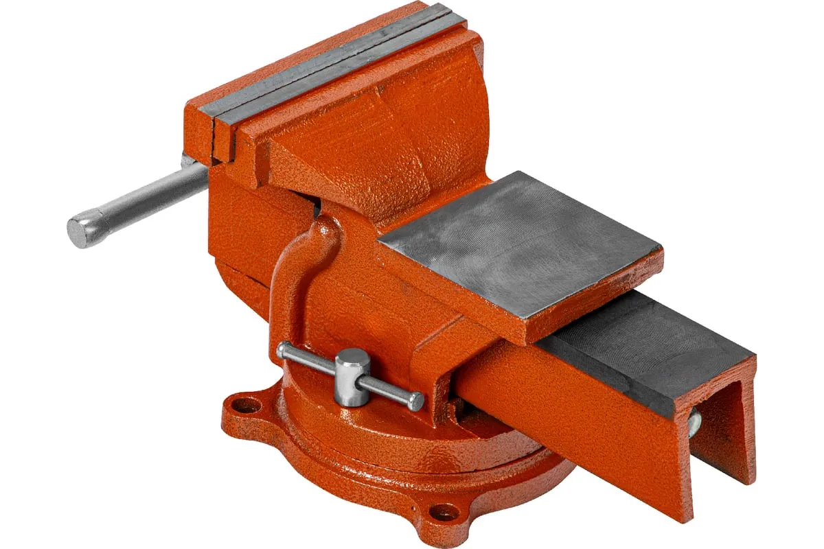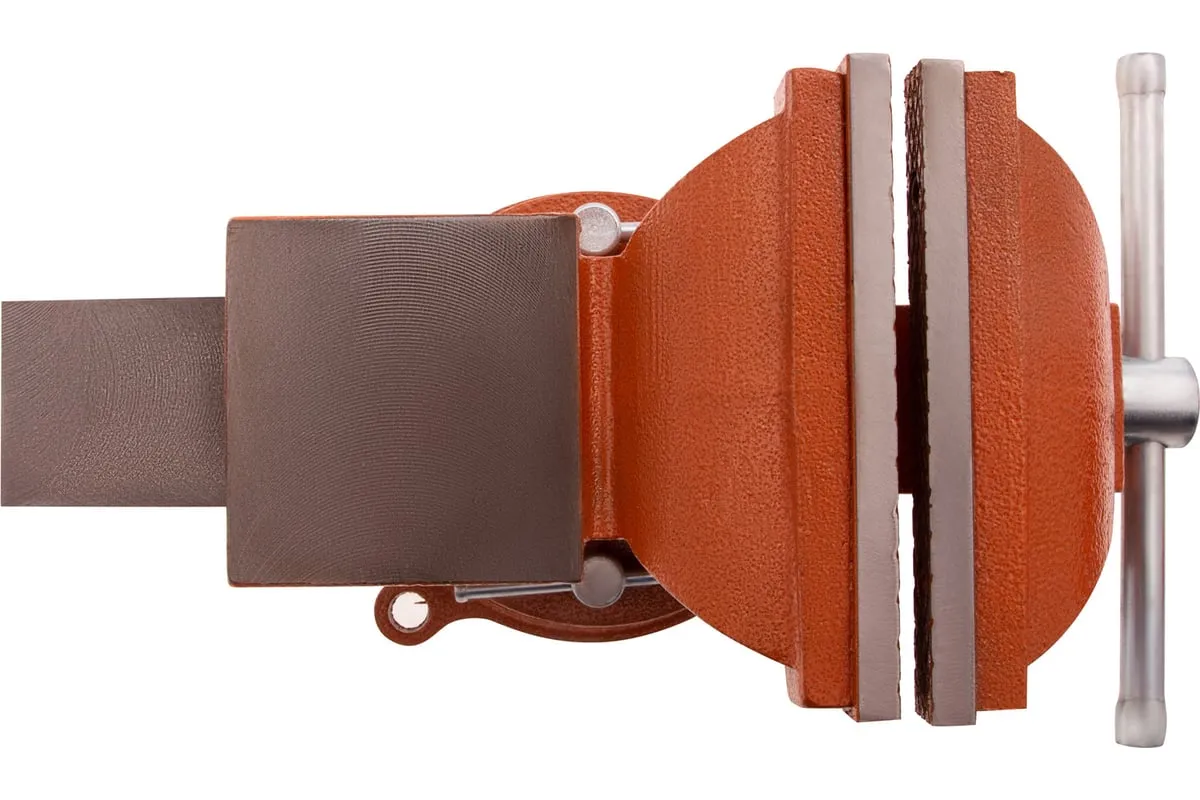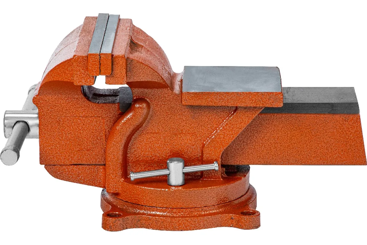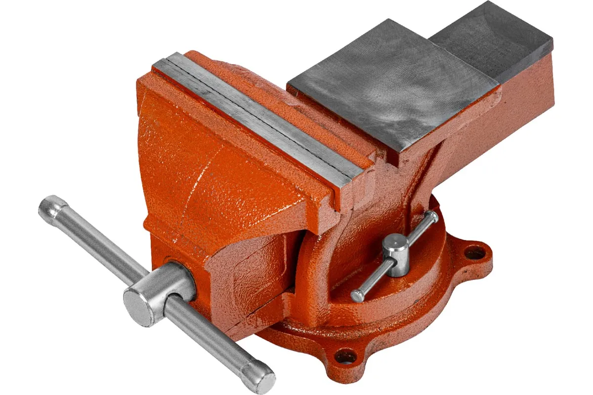 Поворотные слесарные тиски Sparta 186275 с наковальней, ширина губок 150 мм, — это небольшой инструмент для захвата деталей до 125 мм. Будут полезны в частной мастерской или гараже для удобства обработки крупногабаритных заготовок.