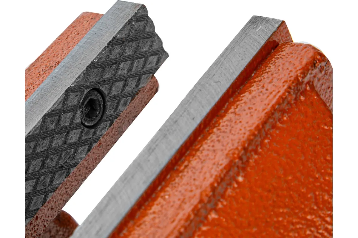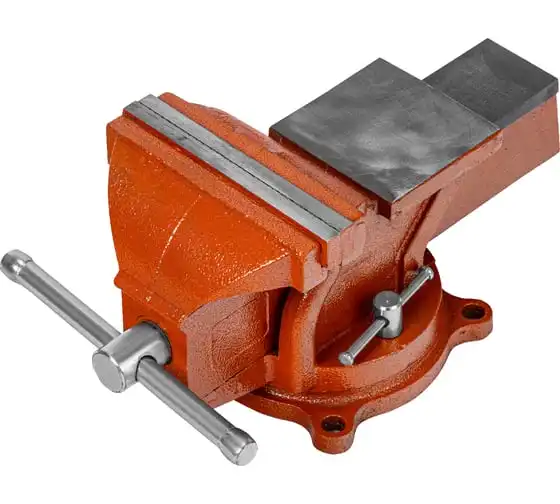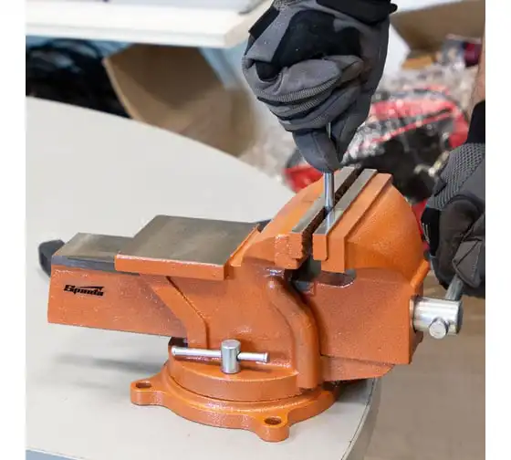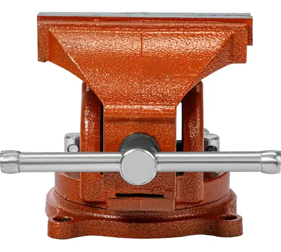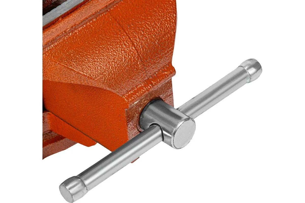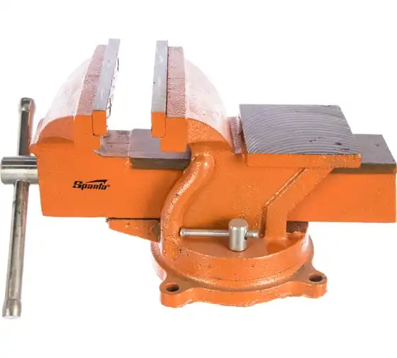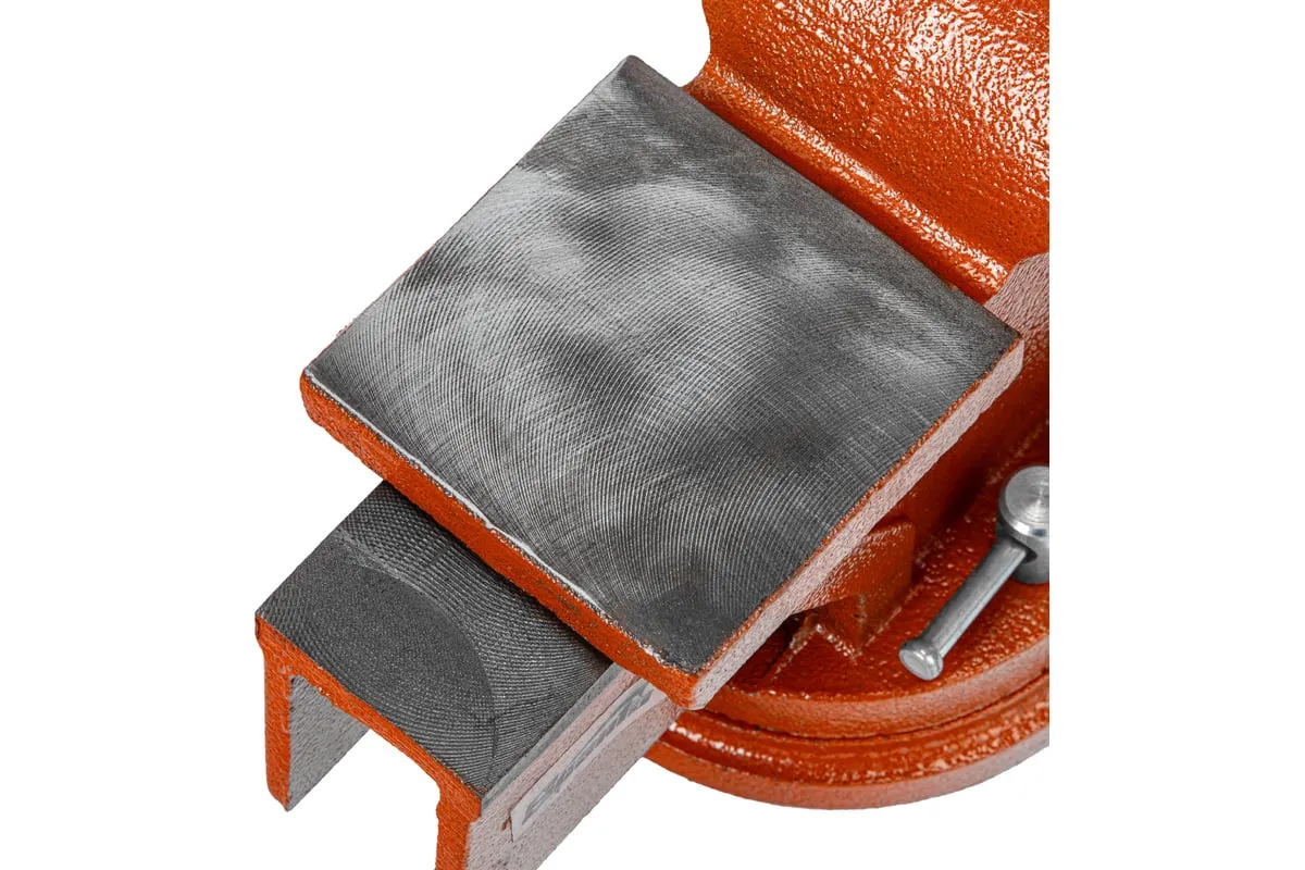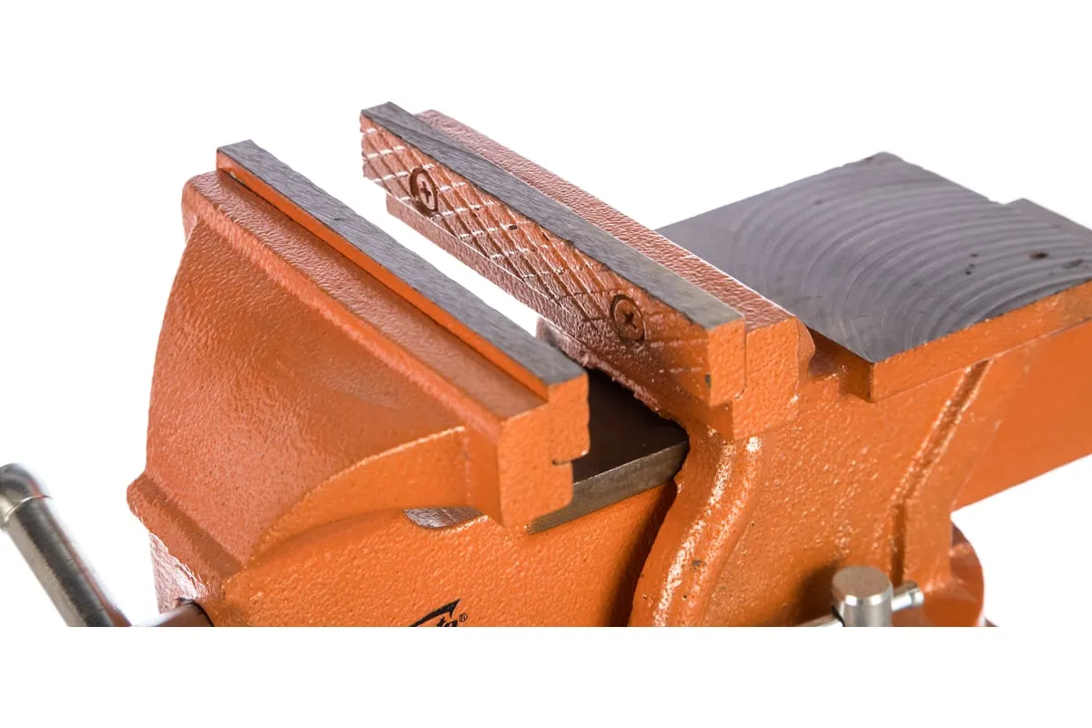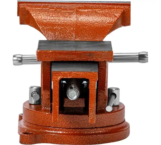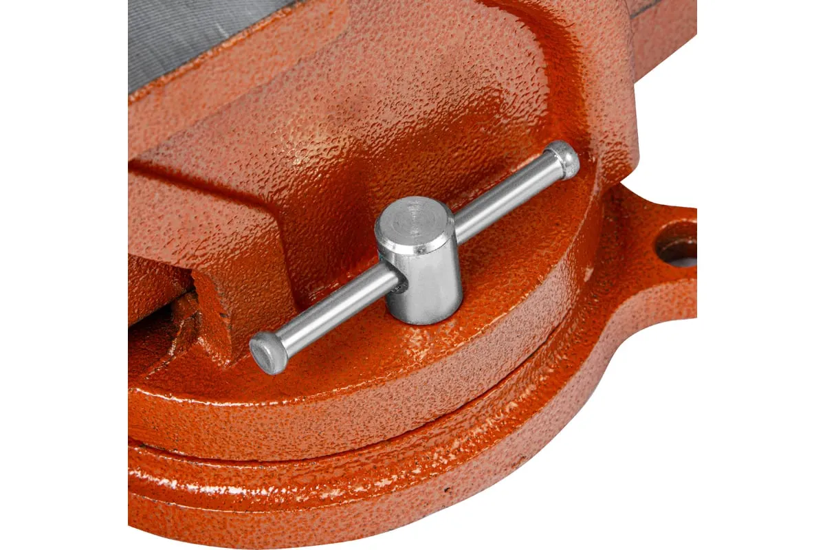 Поворотные слесарные тиски Sparta 186275 с наковальней, ширина губок 150 мм, — это небольшой инструмент для захвата деталей до 125 мм. Будут полезны в частной мастерской или гараже для удобства обработки крупногабаритных заготовок.