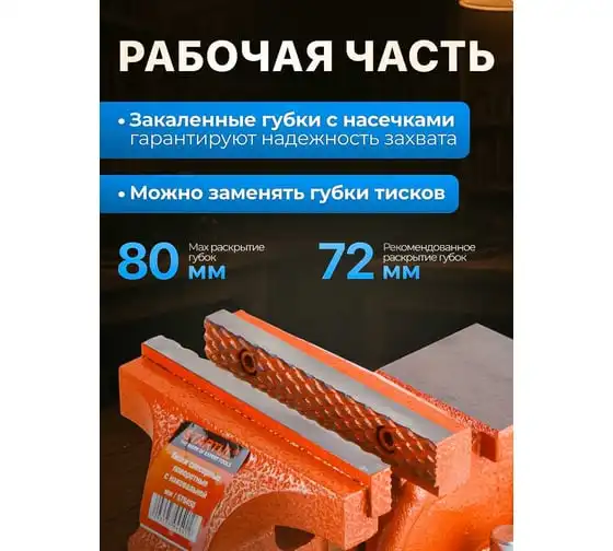 Поворотная конструкция тисков упрощает обработку деталей и заготовок.