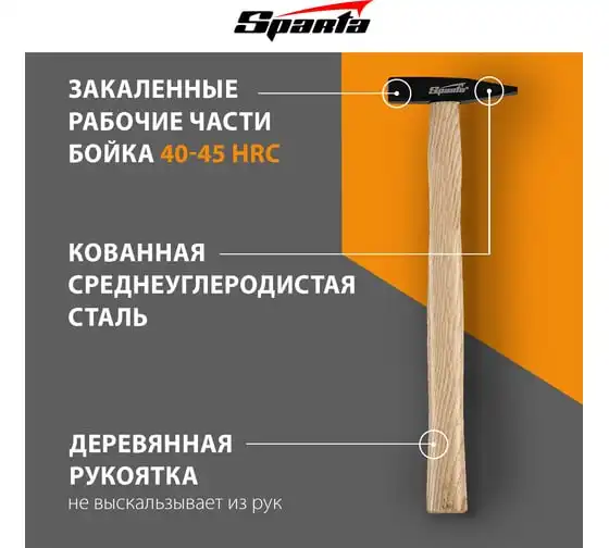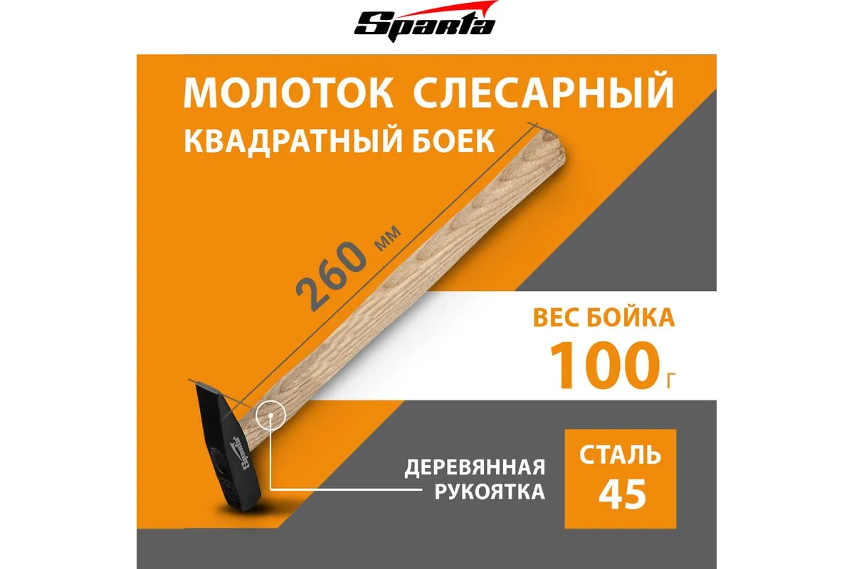 Слесарный молоток Sparta 102025 длиной 260 мм, с квадратным бойком весом 100 г и деревянной рукояткой, предназначен для нанесения ударов при работе с металлом и забивании гвоздей. Малый вес позволяет выполнять большой объем работ с мелким крепежом без усталости и потери точности. Заостренный с одного конца боек облегчает работу в труднодоступных местах. Молоток пригодится на строительной площадке, во время ремонта, сборки и установки мебели, а также будет полезен в домашнем хозяйстве.