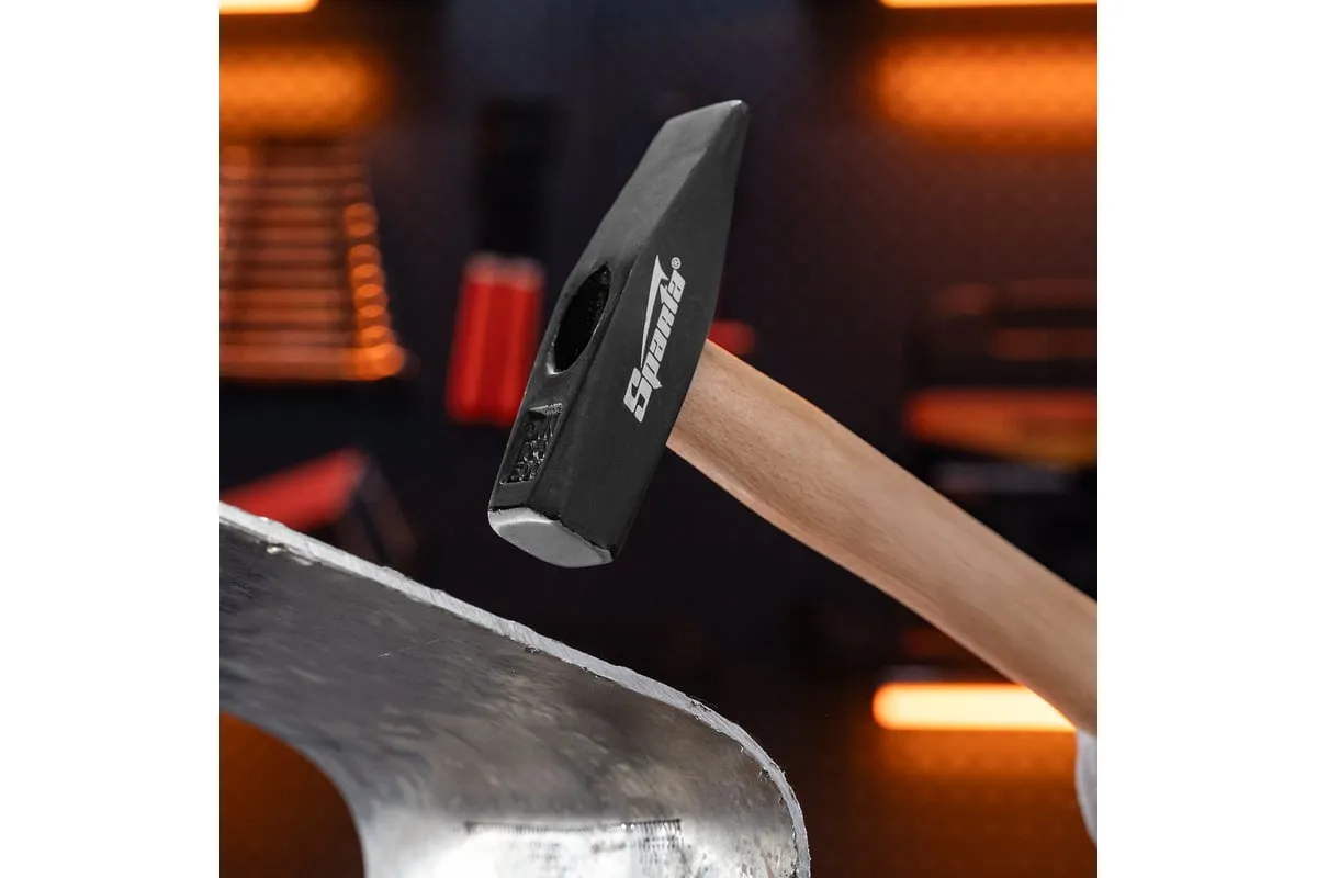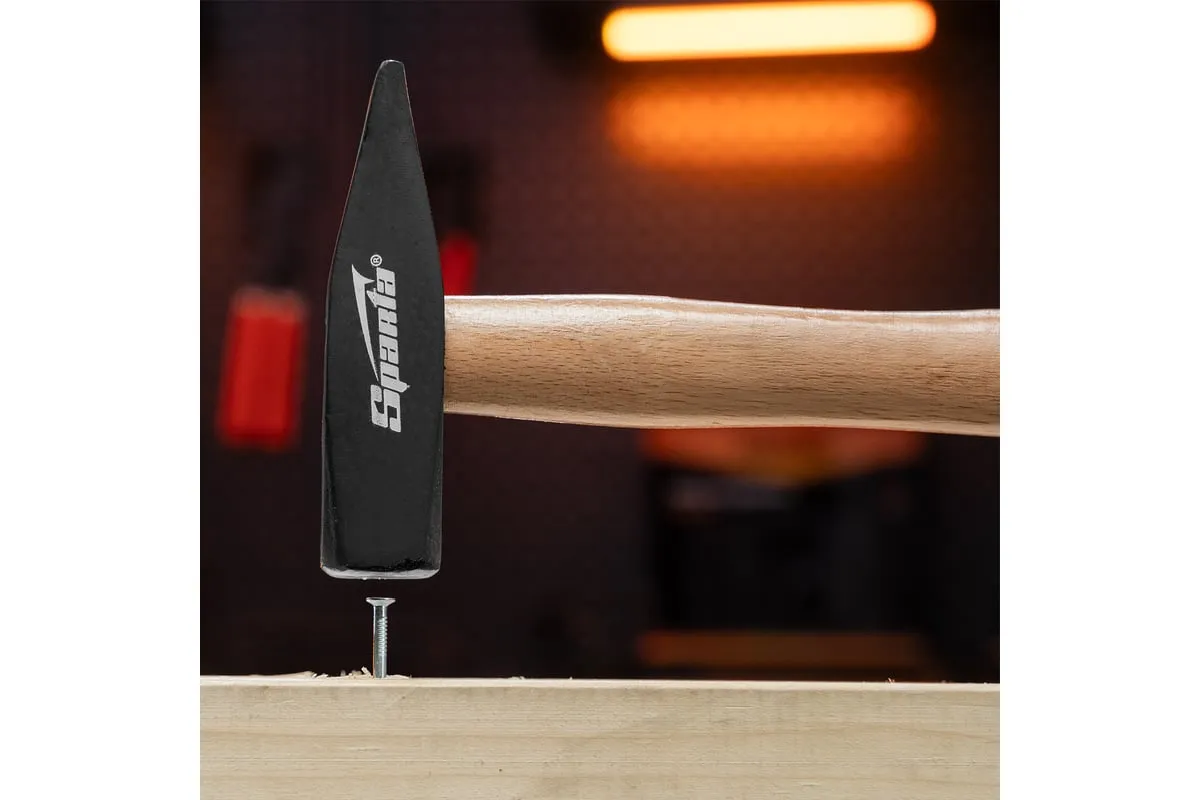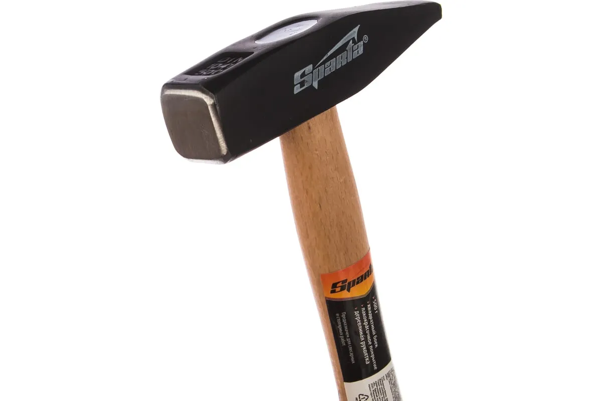 Слесарный молоток SPARTA 102105 имеет деревянную ручку, покрытую бесцветным лаком. Это предохраняет инструмент от неблагоприятных воздействий внешней среды и рассыхания. Закалка придает головке молотка твердость и прочность.