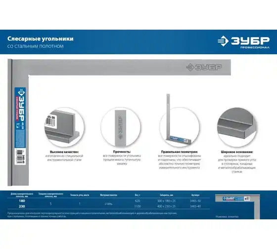 Слесарный угольник ЗУБР Профессионал 300x180 мм 3465-30 используется для проведения измерительных работ в процессе ремонта и строительства. Подходит для профессионального использования. Угольник выполнен из прочного стального полотна толщиной 5 мм и имеет широкое основание для удобства использования. Мощная цельнометаллическая конструкция угольника обеспечивает долгий срок службы.