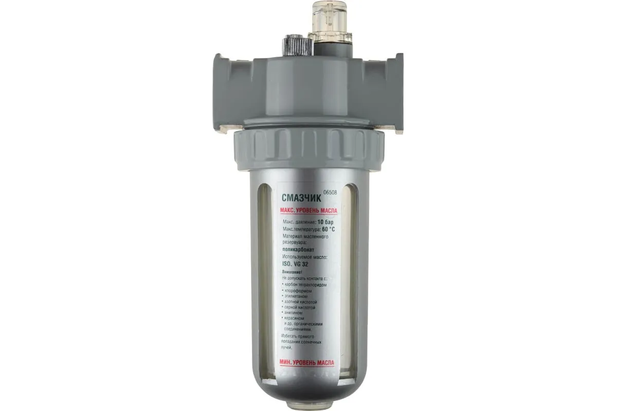Смазчик KRAFTOOL 6 бар 06508 используется с пневмоинструментом, требующим непрерывную смазку в процессе работы (пневмогайковерты, пневмозаклепочники и т.д). Осуществляет контролируемую подачу масла в воздушную магистраль.