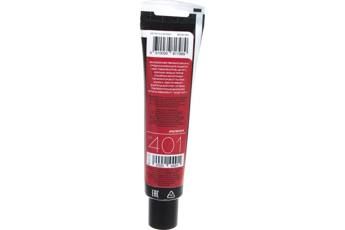 Смазка для буров Arsenal AR-401 PATRIOT 855401145 предназначена для смазки буров. Применяется для уменьшения трения и попадания пыли на внутренние части механизма. Применение данной смазки значительно увеличивает срок службы инструмента. Масса - 100 грамм.