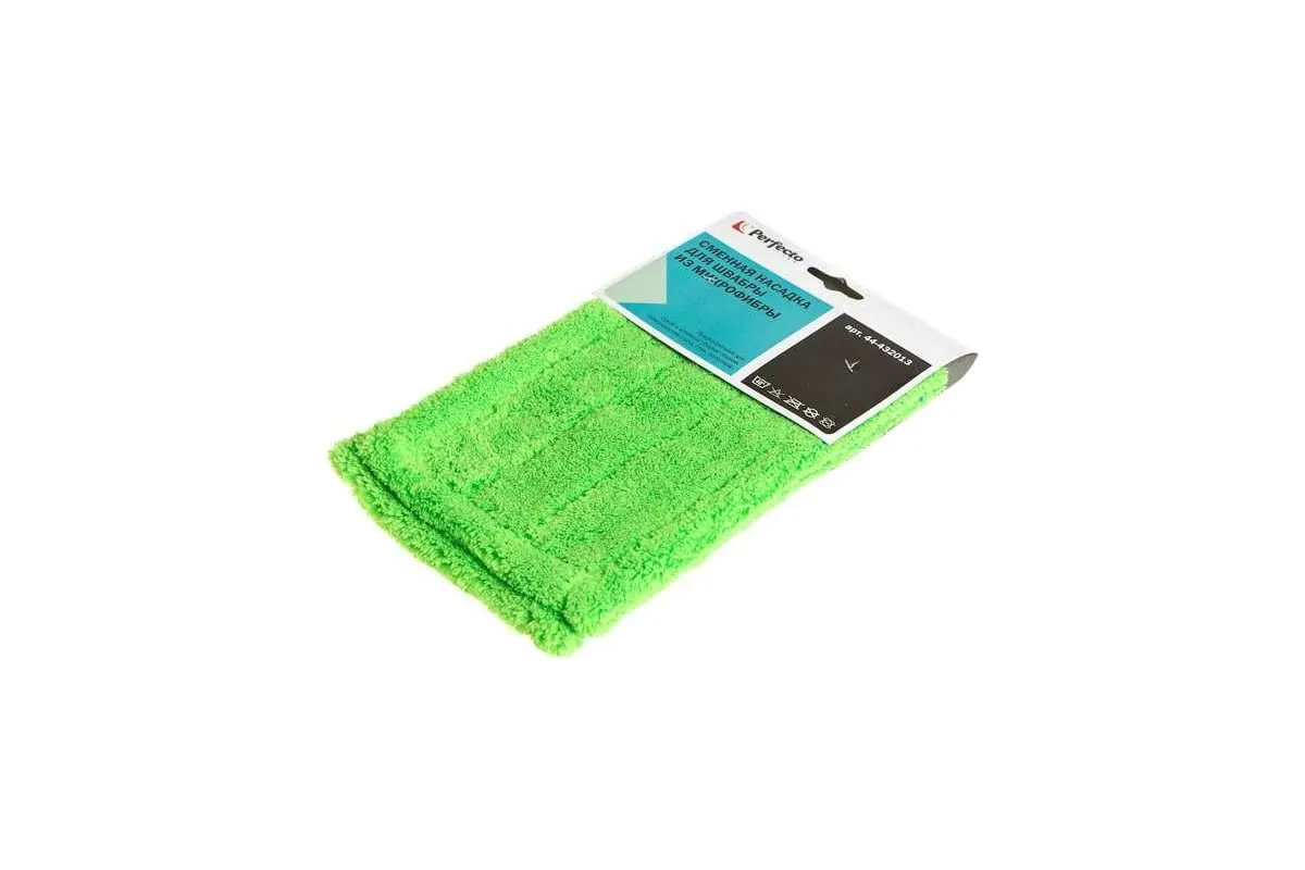 Сменная насадка для швабры из микрофибры PERFECTO LINEA зеленая 44-432013 предназначена для сухой и влажной уборки гладких полов (паркета, кафеля, ламината, линолеума), потолков, стен. Отличается большим сроком эксплуатации благодаря специальному материалу, который не скатывается и не линяет. Волокна насадки впитывают намного больше жидкости, чем обычные ткани. Разрешается стирка при температуре до 40 градусов. После нее микрофибра быстро сохнет.