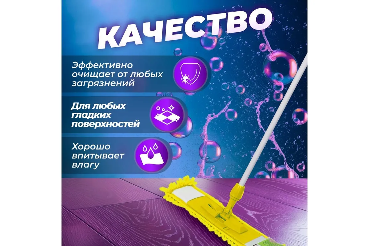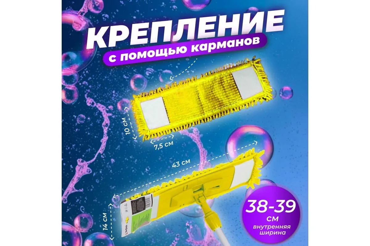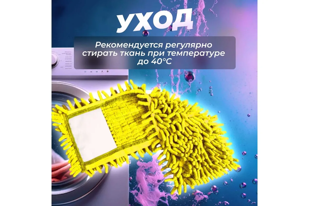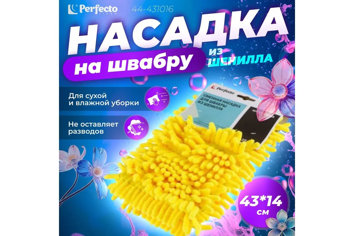 Сменная насадка для швабры из шенилла PERFECTO LINEA желтая 44-431016 подходит любого вида пола. Максимальную чистоту обеспечивает способность материала легко впитывать жидкость, грязь, вбирать в себя мелкий мусор. Разрешается стирка при температуре до 40 градусов.