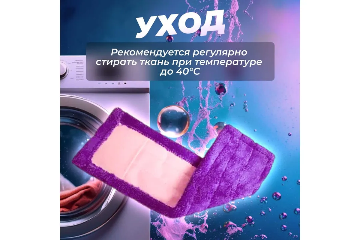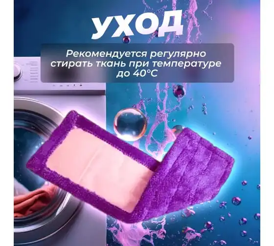 Сменная насадка для швабры из микрофибры предназначена для сухой и влажной уборки гладких полов (паркета, кафеля, ламината, линолеума), потолков, стен. Отличается большим сроком эксплуатации благодаря специальному материалу, который не скатывается и не линяет. Волокна насадки впитывают намного больше жидкости, чем обычные ткани. Разрешается стирка при температуре до 40 градусов. После нее микрофибра быстро сохнет.