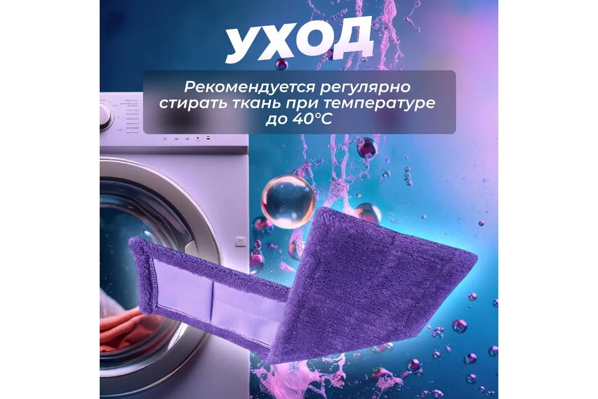 Сменная насадка для швабры из микрофибры предназначена для сухой и влажной уборки гладких полов (паркета, кафеля, ламината, линолеума), потолков, стен. Отличается большим сроком эксплуатации благодаря специальному материалу, который не скатывается и не линяет. Волокна насадки впитывают намного больше жидкости, чем обычные ткани. Разрешается стирка при температуре до 40 градусов. После нее микрофибра быстро сохнет.