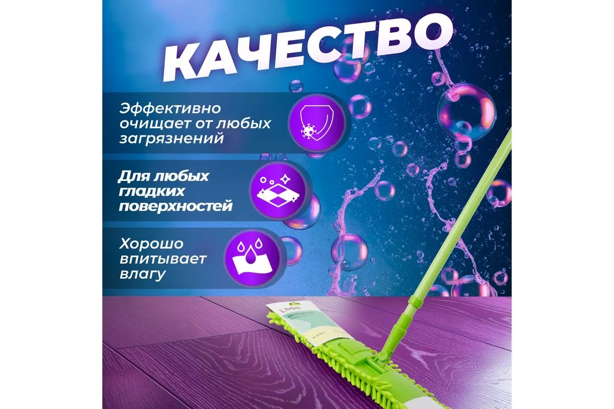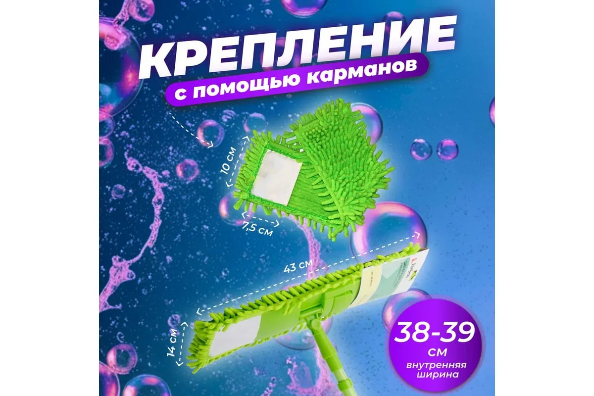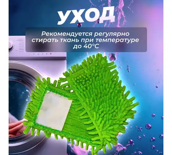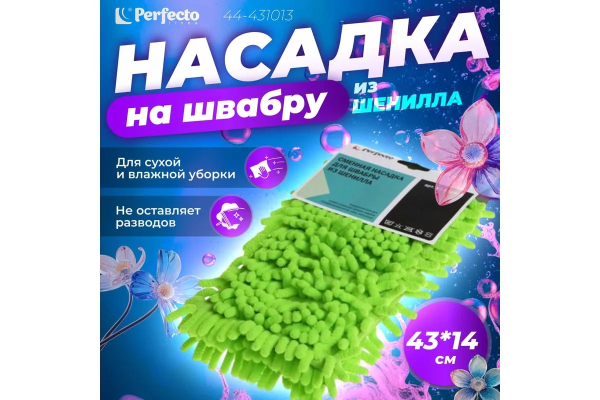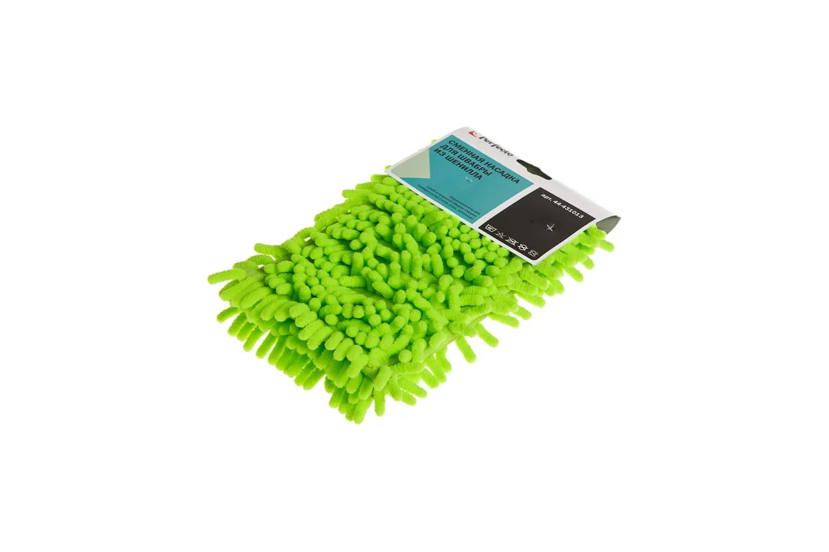 Сменная насадка для швабры PERFECTO LINEA из шенилла зеленая 44-431013 предназначена для сухой и влажной уборки гладких полов (паркета, кафеля, ламината, линолеума), потолков, стен. Отличается большим сроком эксплуатации благодаря специальному материалу, который не скатывается и не линяет. Волокна насадки впитывают намного больше жидкости, чем обычные ткани. Разрешается стирка при температуре до 40 градусов.