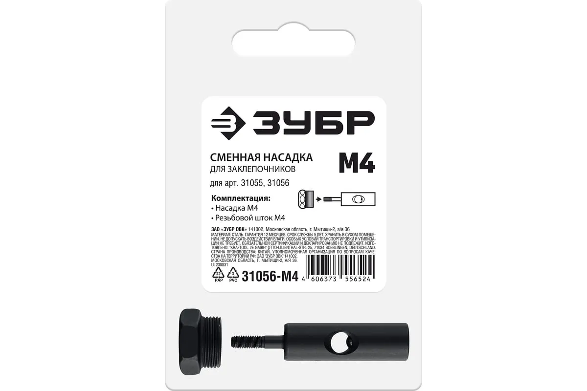 Сменная насадка ЗУБР М4, для заклепочников 31055, 31056 31056-M4
