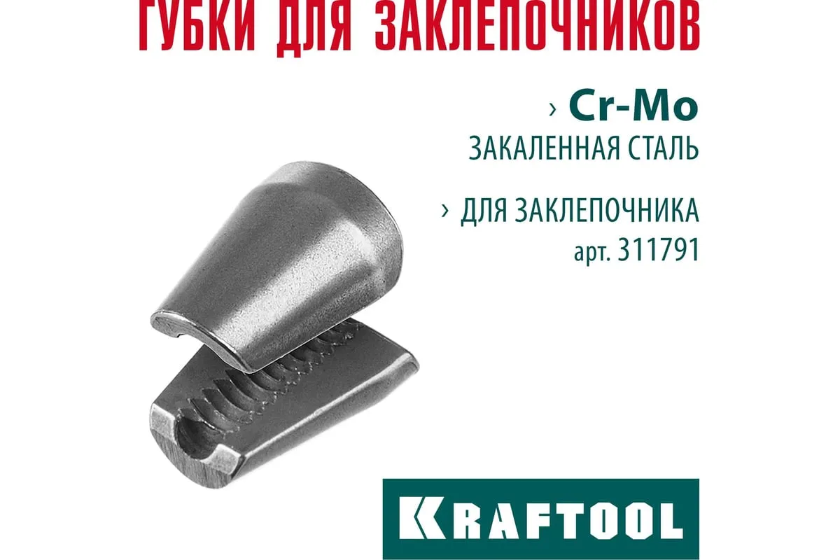 Сменные губки для заклепочника 311791 KRAFTOOL GRAND-64 311791-SJ изготовлены из хромистой стали SCM440, закалены и устойчивы к циклическим нагрузкам.