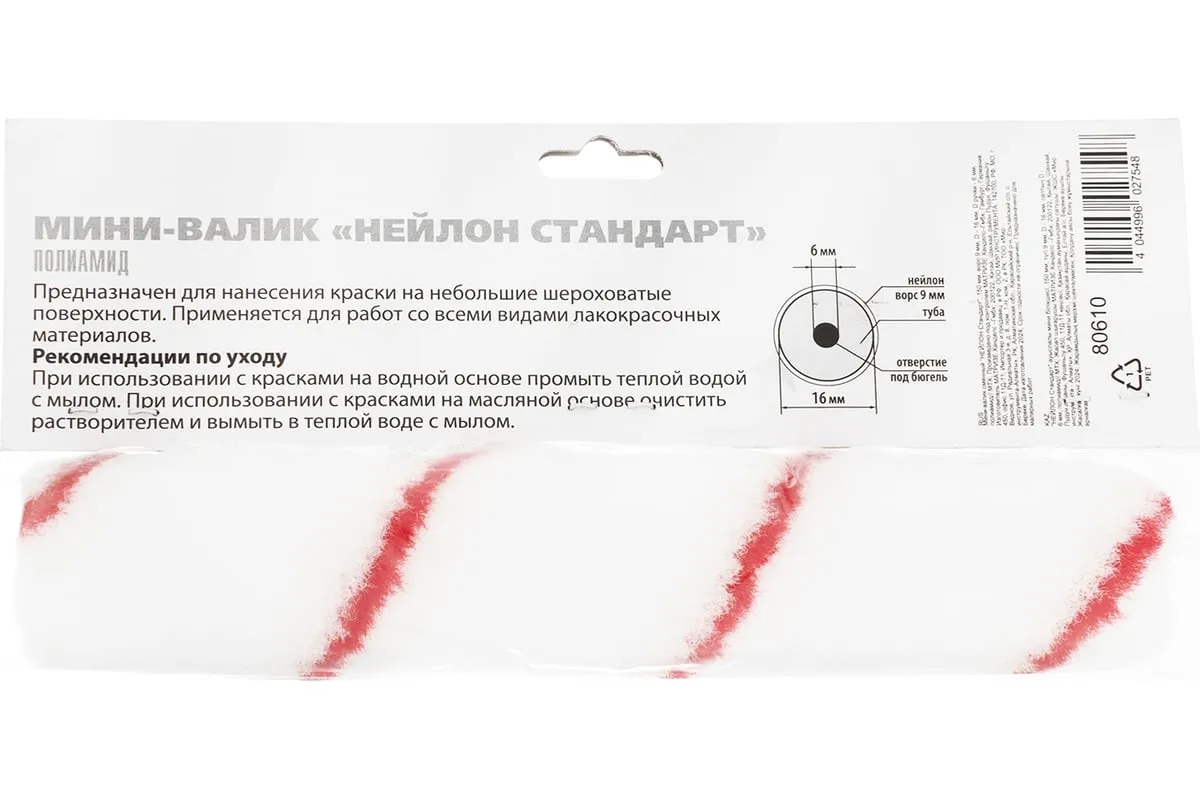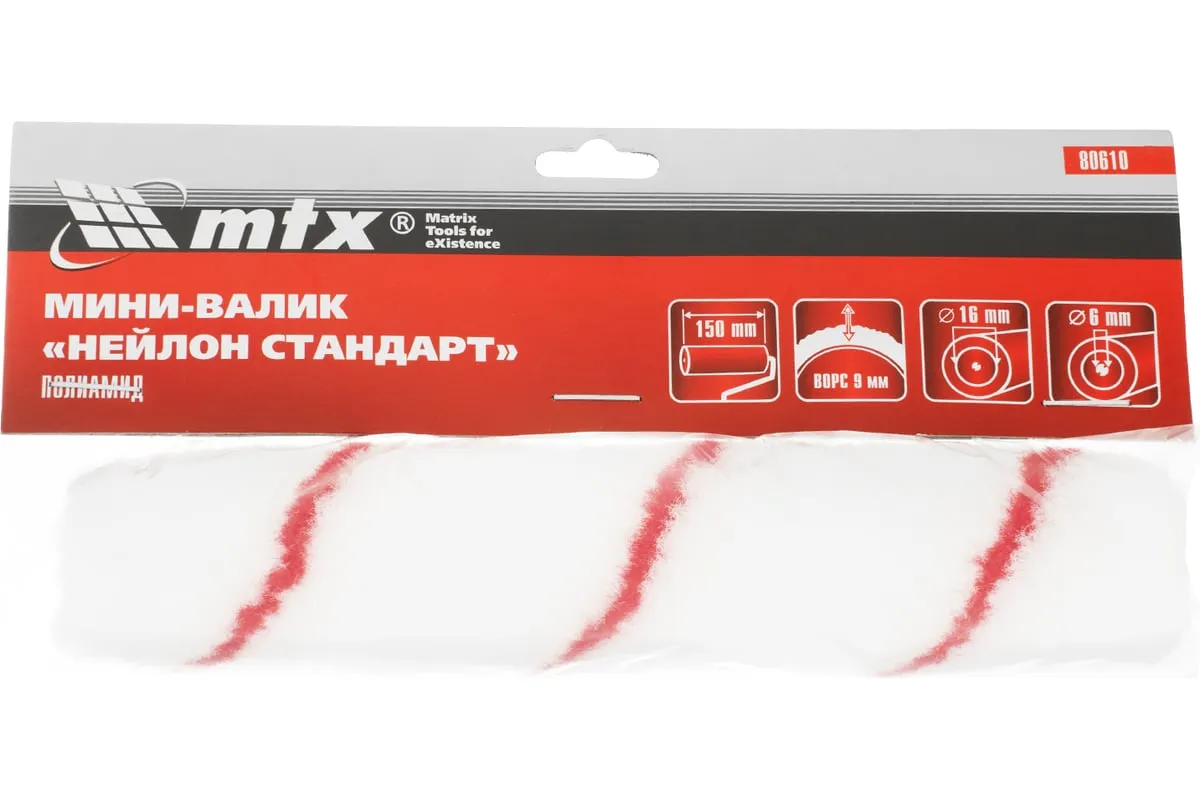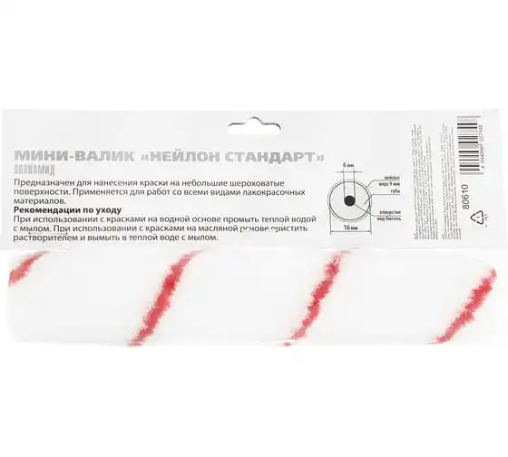 Сменный мини-валик НЕЙЛОН Стандарт, MATRIX MASTER, 80610 предназначен для работы с красками на основе химических растворителей и дисперсионными краскам. Отличается долгим сроком эксплуатации. Предназначен для работ на полугладких и гладких поверхностях