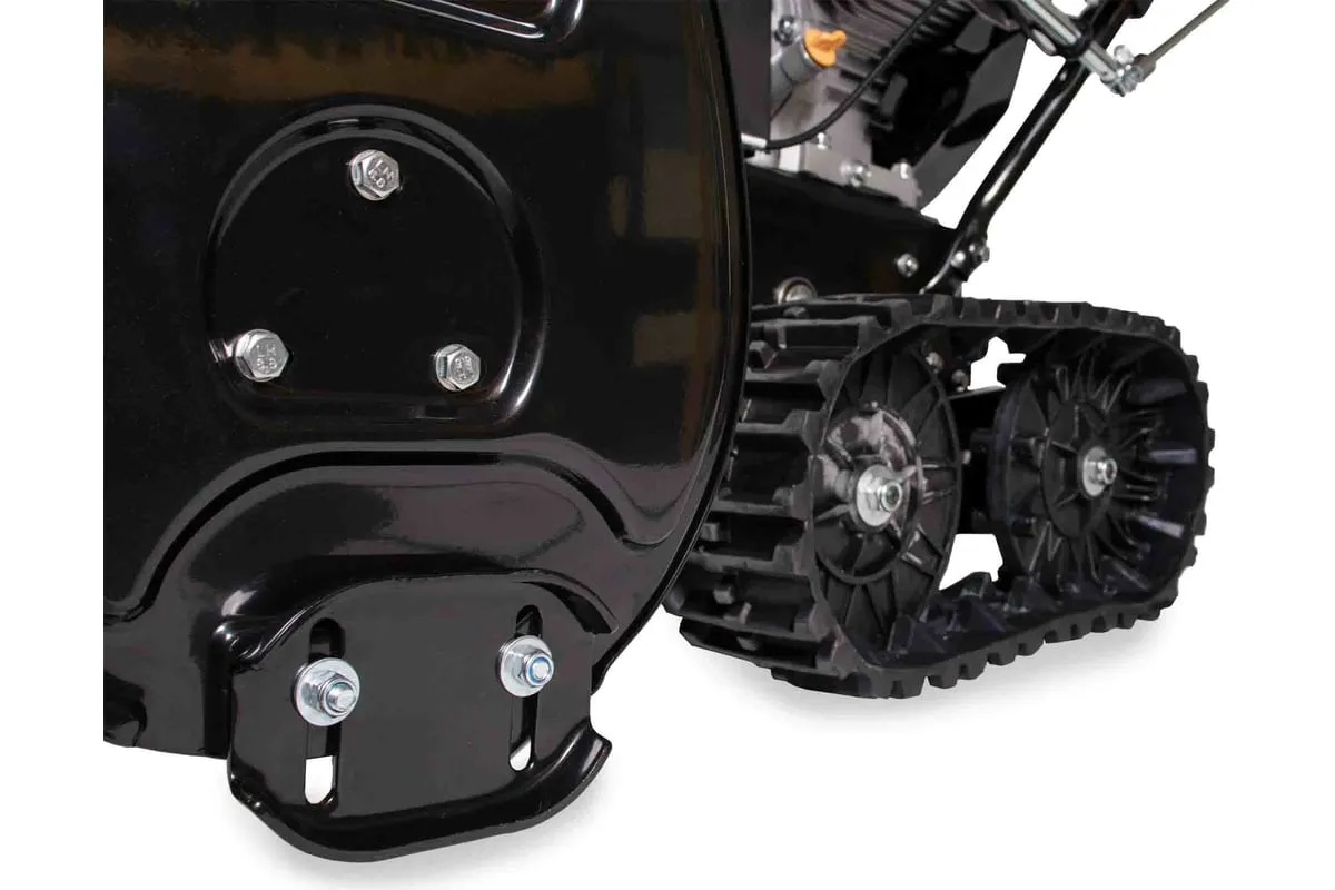 Снегоуборочная машина CHAMPION STT1170E оборудована гусеницами, что дает возможность использовать агрегат в самых сложных условиях. Мощность двигателя - 11 л.с. Ширина обработки достигает 70 см. Наличие нескольких скоростей позволяет подобрать оптимальный режим работы в зависимости от плотности снега (6 вперед/ 2 назад). Для повышения комфорта при работе снегоуборщик оснащен фарой мощностью 60 Вт.