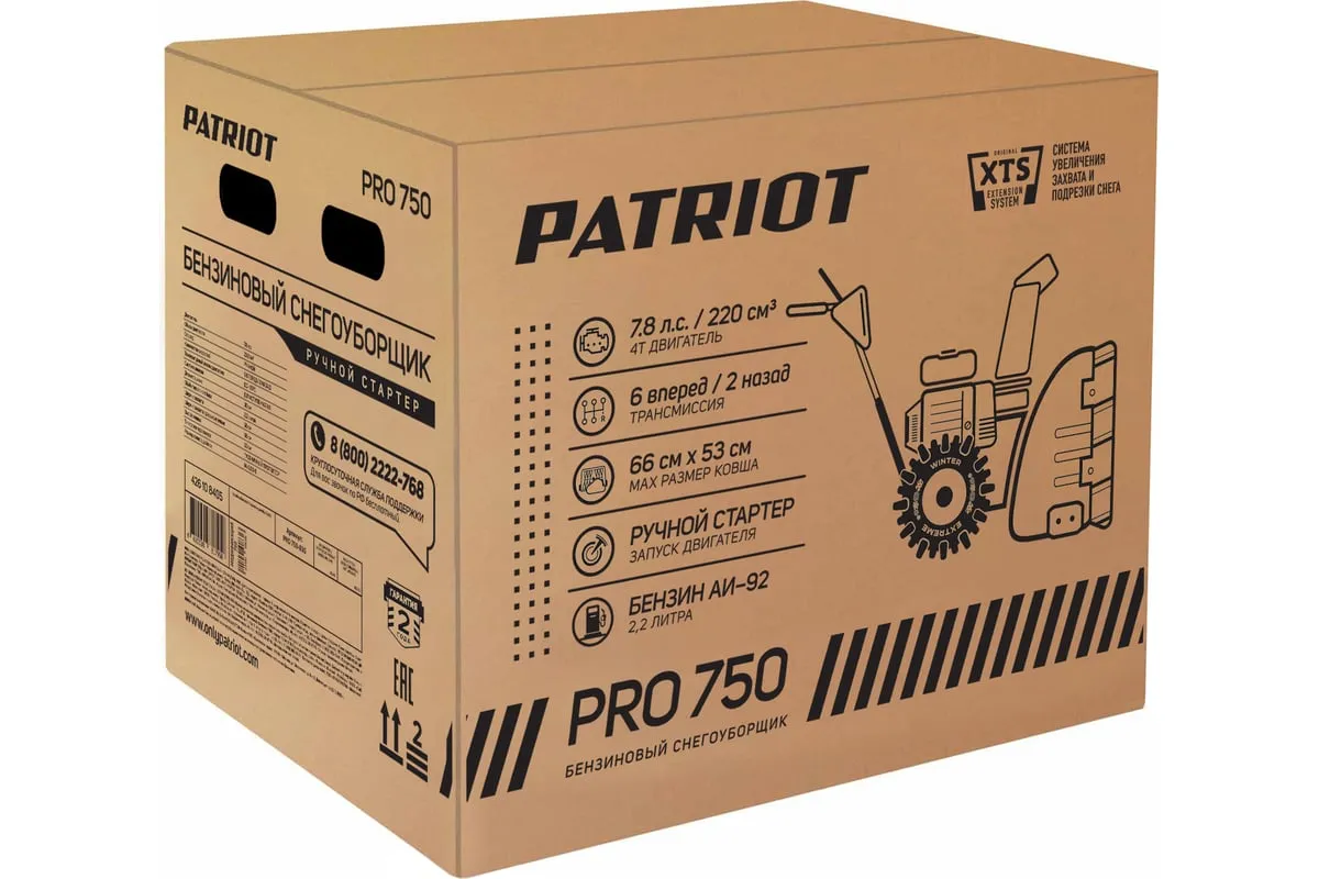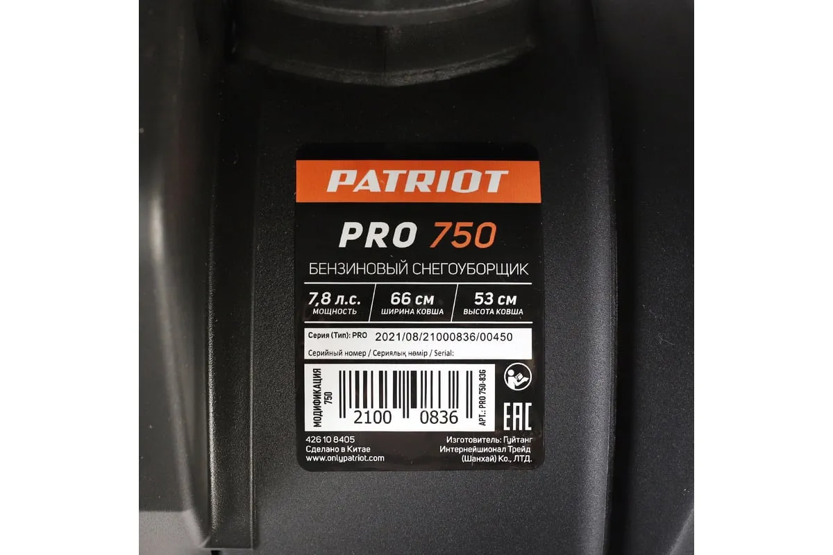 Снегоуборщик PATRIOT PRO 750 426108405 предназначен для регулярного использования в любых условиях для расчистки территории от снега.