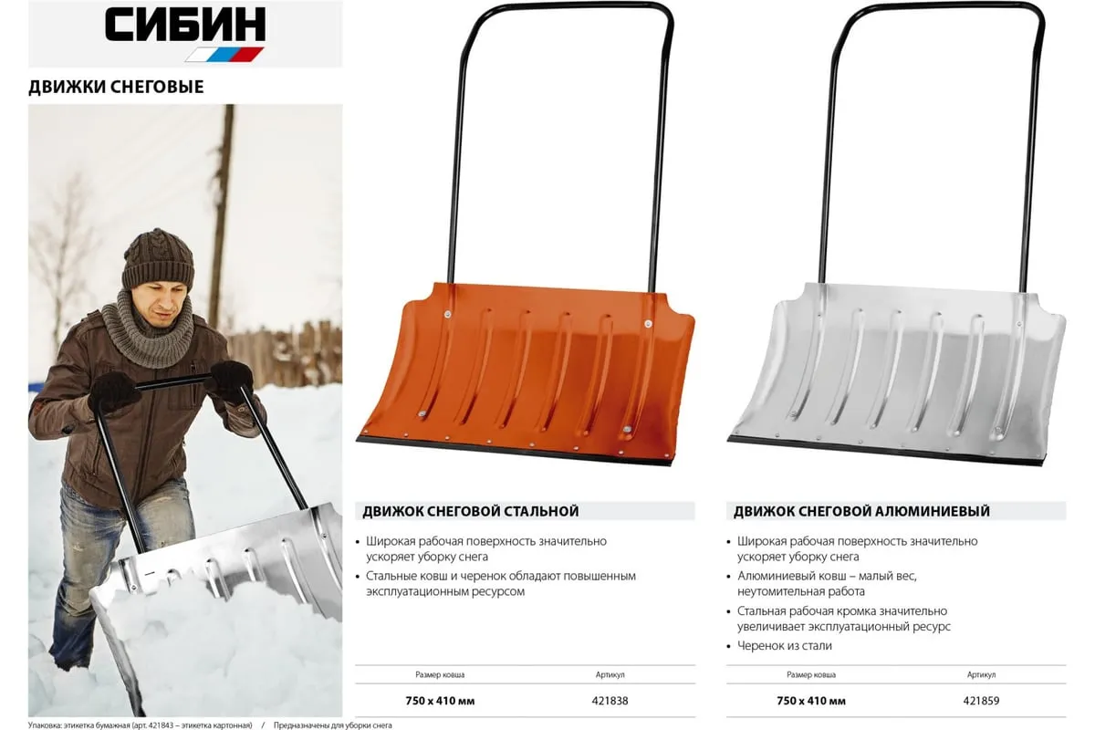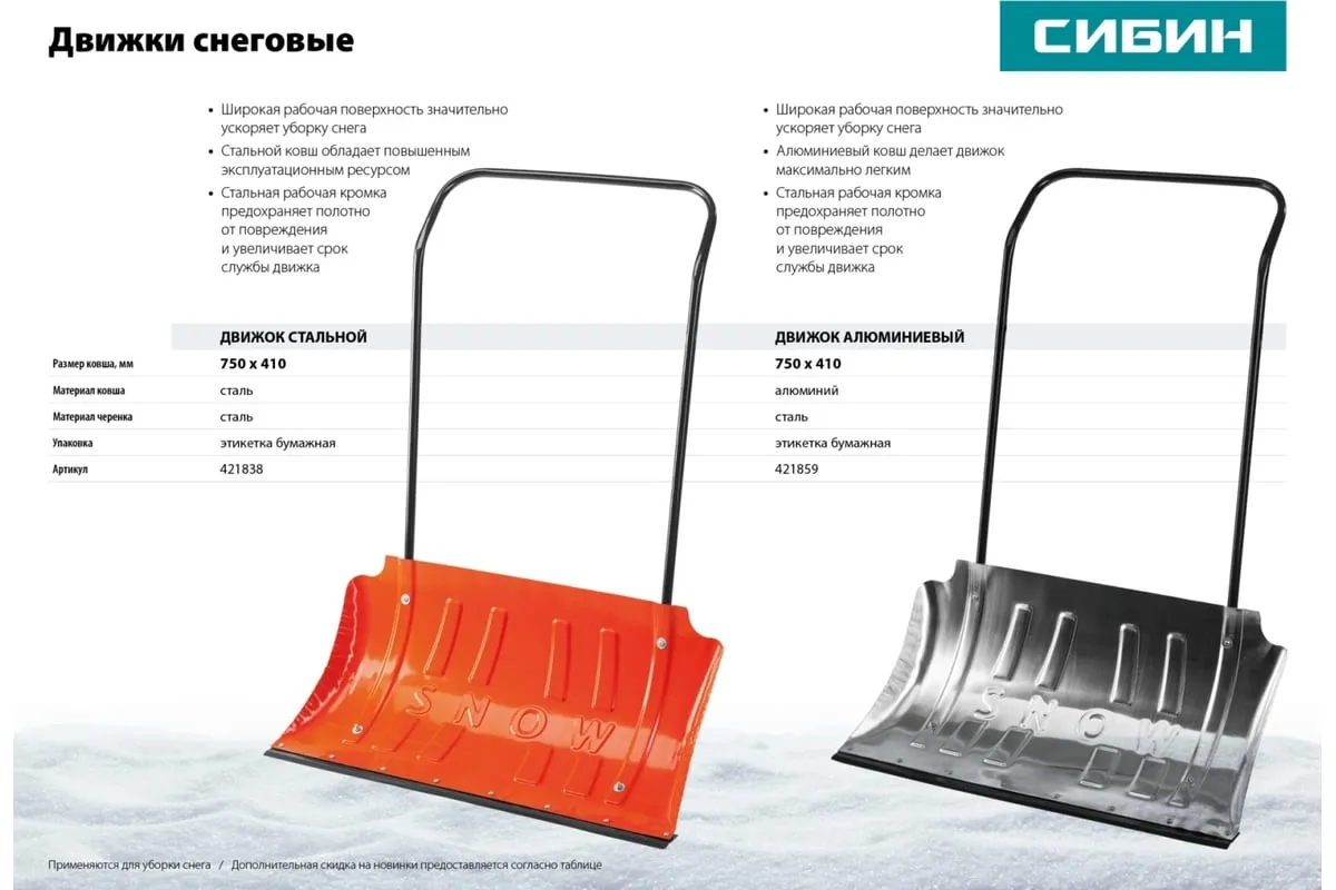 Снеговой алюминиевый движок СИБИН 750мм 421859 упрощает очистку большой территории от снега. Инструмент можно использовать для стоянок, придомовых участков.