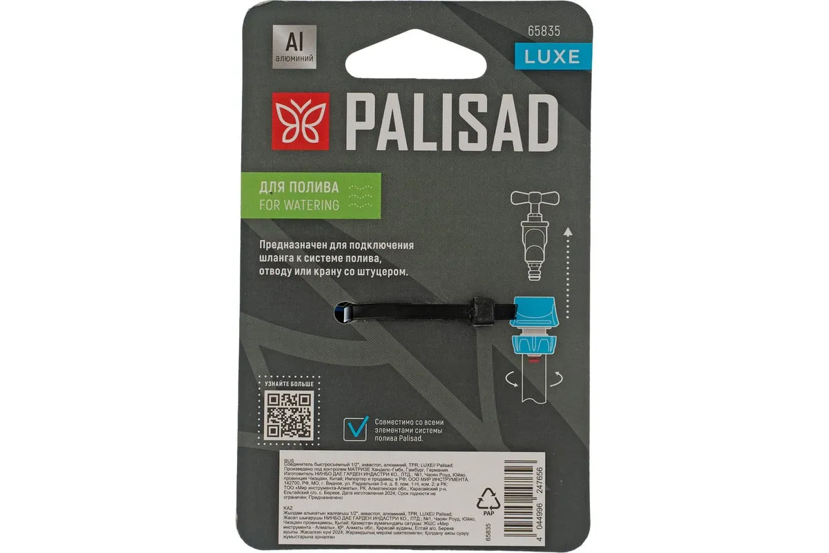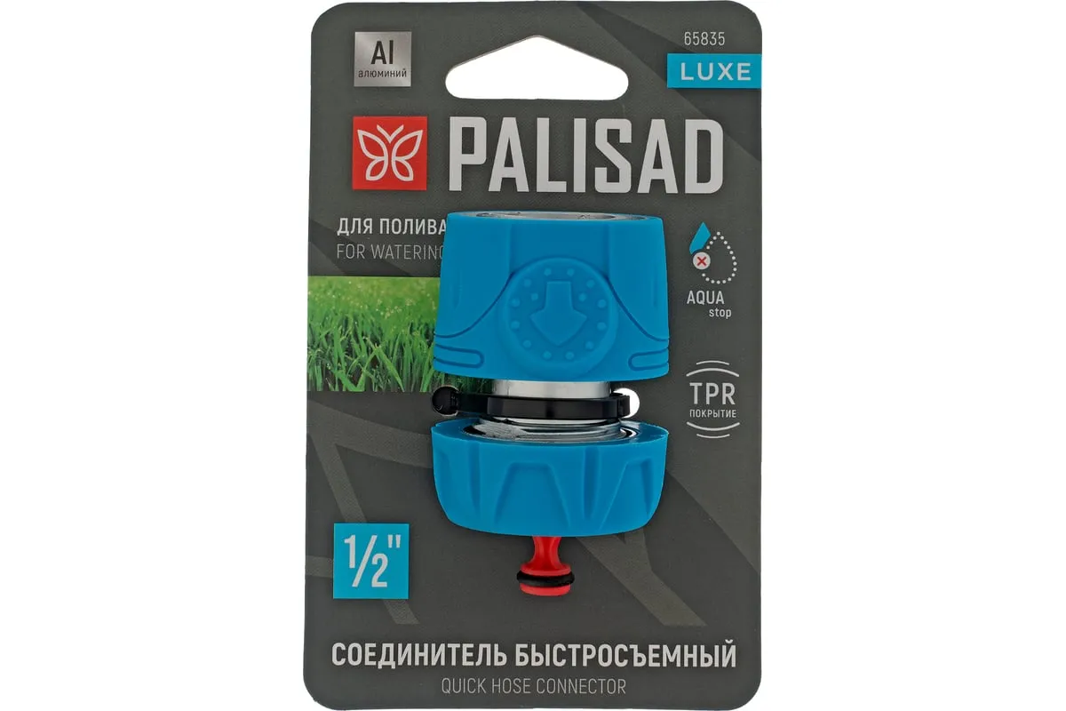 Алюминиевый быстросъемный соединитель Palisad LUXE 65835 с клапаном «аквастоп» используется для организации оросительной системы и устанавливается на шланг диаметром 1/2". Предназначен для подключения пистолета, разбрызгивателя или других насадок. Пригодится дачникам для ухода за растениями на садово-огородном участке.