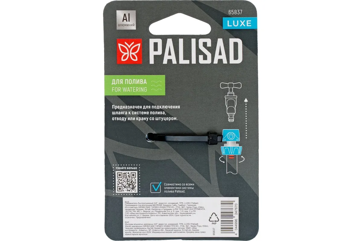 Алюминиевый быстросъемный соединитель Palisad LUXE 65837 с клапаном «аквастоп» используется для организации оросительной системы и устанавливается на шланг диаметром 3/4". Предназначен для подключения пистолета, разбрызгивателя или других насадок. Пригодится дачникам для ухода за растениями на садово-огородном участке.