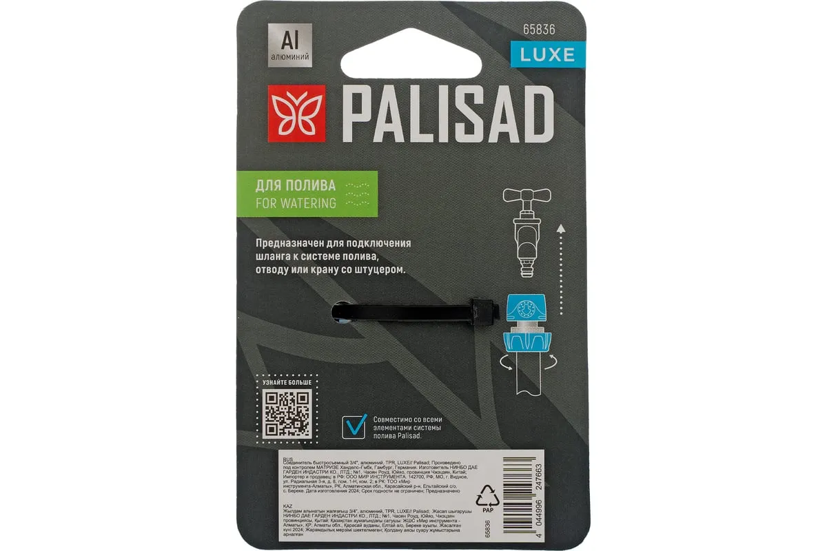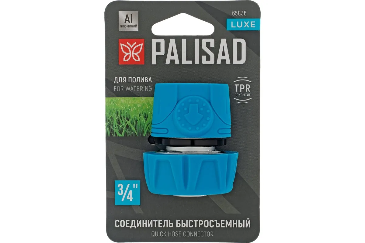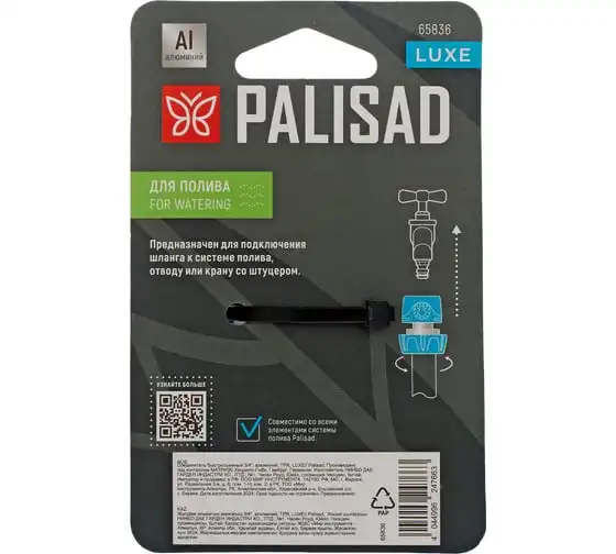 Быстросъемный алюминиевый соединитель Palisad LUXE 65836 — переходник для присоединения шланга диаметром 3/4" к водопроводной системе. Пригодится дачникам и сотрудникам коммунальных служб для ухода за растениями в саду, на огороде, в парке, на придомовой территории и т. д.