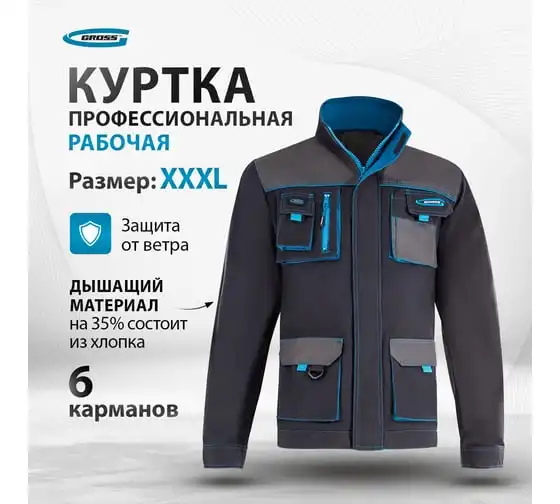 Куртка профессиональная рабочая GROSS хлопок/спандекс, XXXL 90436