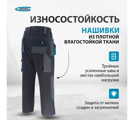 Брюки профессиональные рабочие GROSS 97% хлопок 3% спандекс, M 90437